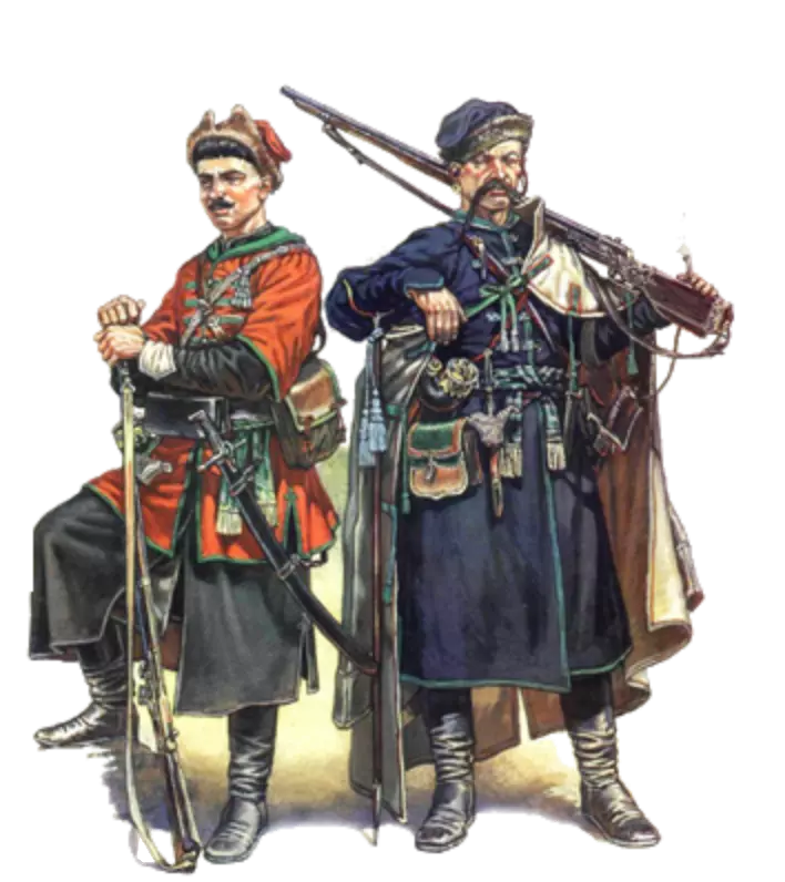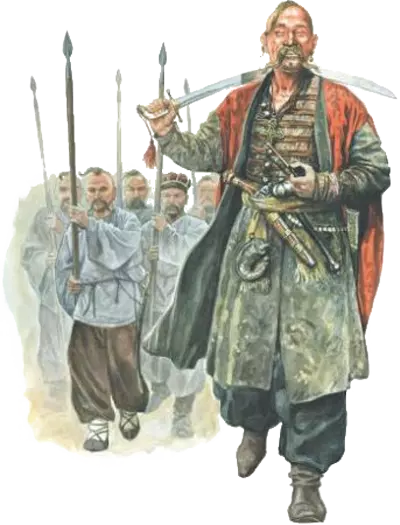 持矛哨兵-轻装持矛骑兵... 哨兵-轻装哥萨克骑兵,配备马刀和卡宾枪... 侍从-哥萨克长老的武装人员和仆人...装备手枪和马刀...穿着如同普通哥萨克... 在册哥萨克-被征召为波兰国王效力的在册哥萨克...然而在赫梅利尼茨基起义期间,他们决定支持起义者... "射手"谢尔久基-盖特曼的私人护卫...他们由盖特曼国库供养,装备精良……是全欧洲最优秀的射手…… 扎波罗热步兵——装备精良滑膛枪的步兵……身着哥萨克长袍……每人都配有用于近战的马刀…… 城市哥萨克——在册哥萨克,驻守于城市和要塞…… 哥萨克贫民——贫困的哥萨克,参战装备简陋……配备土制手枪、长柄镰刀和斧头…… 【步兵】