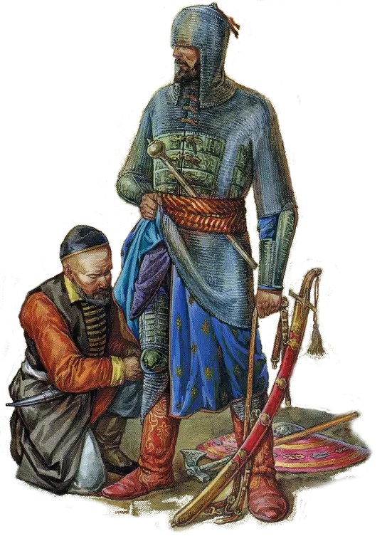 无业游民 - 字面意思是“白吃白喝的人”……算是一种哥萨克海盗,配备手枪和军刀……穿着相当坚固的链甲和带帽子的短上衣。 持矛的流浪者 - 装备长矛的落魄哥萨克。 农民 - 哥萨克村庄和村落的居民……在战斗中没什么用处,顶多能把敌人的注意力吸引到自己身上。 “克里米亚汗国” 可汗的军队确实非常庞大。几乎全部由骑兵组成,只有一小部分贫穷的鞑靼人因买不起马而徒步作战……此外,一些土耳其部队也作为步兵参战……大部分骑兵为轻骑兵,但也有中型和重型骑兵…… 【努克骑兵】是鞑靼最重型的骑兵……坚固的链板甲为他们抵御刀剑攻击……敌人会用长矛刺穿我方阵型,并用马刀砍杀逃跑的士兵…… 阿萨克-贝伊——“贝伊”是突厥民族的贵族头衔之一……地位仅次于可汗……精良的装备是贵族的标志……他们拥有优质的马刀、钢制盾牌和战马…… 切尔克斯人——可汗麾下的切尔克斯骑兵弓箭手……装备精良且训练有素……身着优质链甲,骑乘快马……杰贝勒人——字面意思是“披甲兵”,但你在他们身上看不到铠甲……他们的穿着是长袍和头巾……武器则各式各样……有长矛、弯刀、弓箭…… 穆尔扎-查姆布勒人——“穆尔扎”本是贵族头衔……其地位低于“贝伊”,但穆尔扎仍被视为贵族……“查姆布勒”意为“突袭、奔袭”……由此可以推测这些战士的作战方式……他们是装备相当精良的骑马弓箭手……奥格兰人——字面意思为“儿子”,是克里米亚汗国享有特权的军事阶层……装备有骑兵长矛和盾牌。
