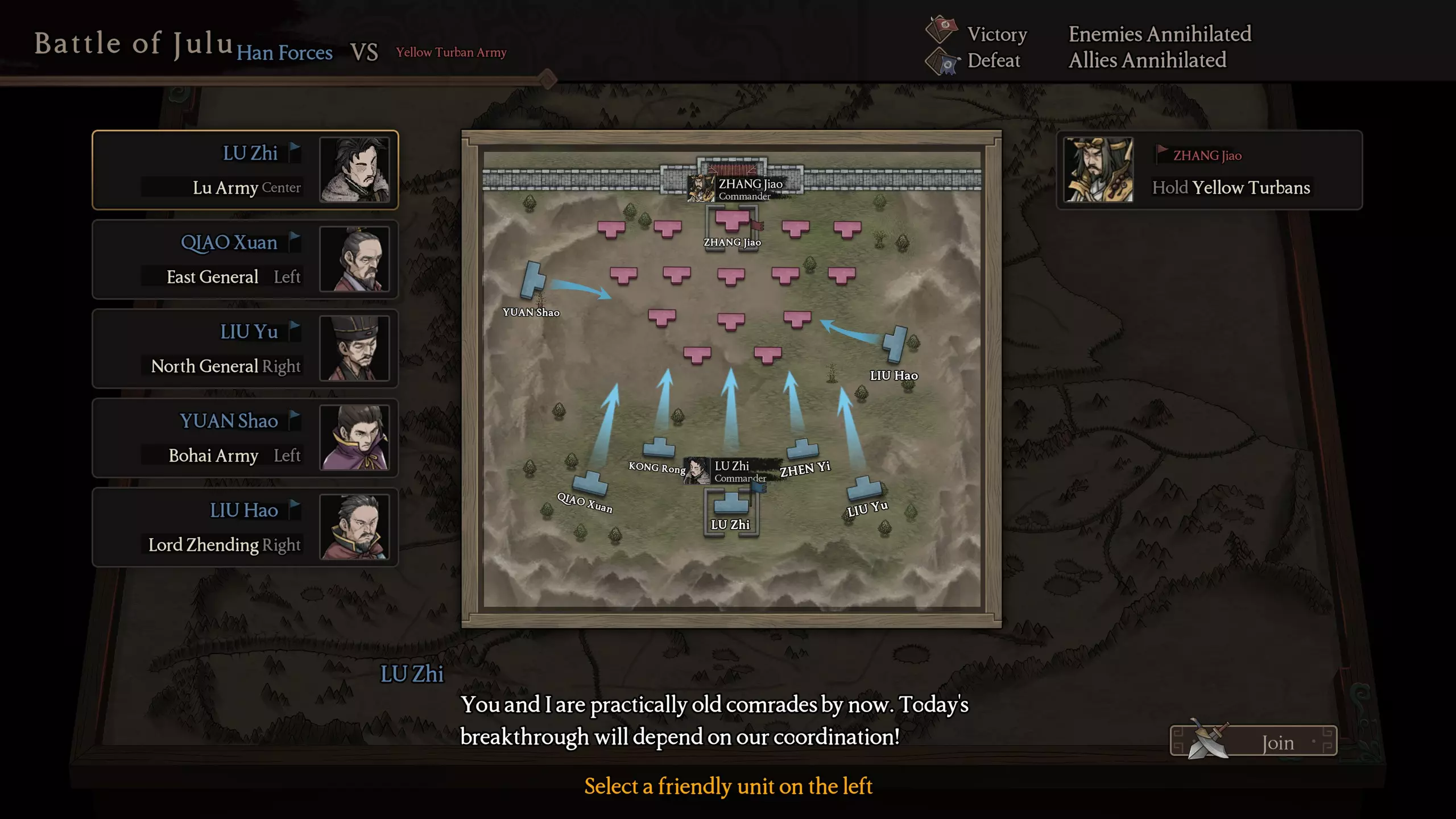 当您积累的声望值达到一定程度时,就到了选择势力的时机。您可以从下方栏目中查看感兴趣的势力,这里先介绍一下整体系统,各按钮功能如下: - Mission:点击查看可接任务,通常有4-5个,每月自动刷新(或点击advice刷新) - Armory:点击查看可兑换的物品仓库,大部分为补给物资但有时也会有金币 - 点击【Nominate】查看可购买或租借的军队 加入氏族的关键在于获得优秀的军队协助 - 建议在只剩下无趣任务时点击重置任务 冷却时间大概1-2天 - 提供属性可获得金钱、贡献值、关系值有机会的话应该借用部队,李傕和我们的主角配合足以轻松击破董卓军(骑马突袭+范围大招),这能让前期变得轻松很多。另外,借用时长为20天,但借用配额每30天重置一次,而且根据访客等级还能多次借用。有个有趣的点是,接受任务的时候,大部分都是些干坏事的任务,比如掠夺其他家族、制造破坏、勒索钱财(勒索贼窝,但没说要打什么?难道贼会交一部分钱就接受了?)总的来说,经常会在自己身边随意砍杀那些文臣武将,但当你参与到战场剧情时,这些文臣武将们却会互相说些好听的话,比如“您真是英勇过人”“您这位长者也依然如此刚毅”。等战役结束,我们去接任务,就变成“去把那个据点的人抢了,允许杀死所有挡路的人”,哈哈。不过问我做了吗?好的,什么都可以,【好感度】我都能刷满。这些任务就算会降低与氏族的关系,之后也很容易恢复(只要塞点小礼物就行)。越是红色任务,给的【好感度】就比平时越多。那个发布任务的人还喜欢吓唬我们:“哼,这是个困难任务,可能会有生命危险。”哎呀呀,支线任务。一般来说,到游戏中期你应该能轻松获得5个红色任务。如果做不到,那就更不用说打强盗营地了。这是唯一能解决与该家族关系值降至0以下的指令 - 附属:可以加入该家族军队并获得俸禄,还能晋升爵位 - 告别:通常来说,提升关系的方式有以下几种 1. 提供资源,且只能是珍宝/小珍宝执行任务(但可能会降低受该任务影响的其他氏族的关系)战争的成果,当您参与并取得胜利时,表现越好获得的成果就越多。当您与其他角色的关系发展到一定程度,就可以点击【加入势力】按钮加入该势力(如果您已隶属于其他势力,游戏会提示您是否退出原势力)。接下来您需要做的就是积累玉石值(即参与值或好感度)。并积累相应数值以提升【Guest】等级,该数值仅能通过上述第1-2点获取。最终目标是将【Nominate】栏中的强力角色全部兑换出来,此栏中的角色包括来自典籍的角色(通常较为强力)以及每月随机角色(通常较弱)。当兑换到满意的物品后,就可以准备去申请加入新的门派了。其他信息:1.每次您完成家族任务或用资产兑换时,好感度都会被永久记录,无论您是否加入该家族。未来某天当您点击加入(Affiliate)时,您的访客等级将立即调整为所有已记录的好感度总和(无论该数值是否已被使用)。唯一的方法是重置此数值意味着退出原有宗族(点击加入其他宗族),已积累的好感度及剩余数值将全部归零。在本游戏中,玩家初始身份为最低的【Guest】等级,即9级,之后可以不断提升家族内的等级。提升等级后可获得俸禄和支持度。您可以将鼠标悬停在右上角的支持度数值上进行查看,但俸禄需要每月点击该家族的【Affiliate】按钮领取。