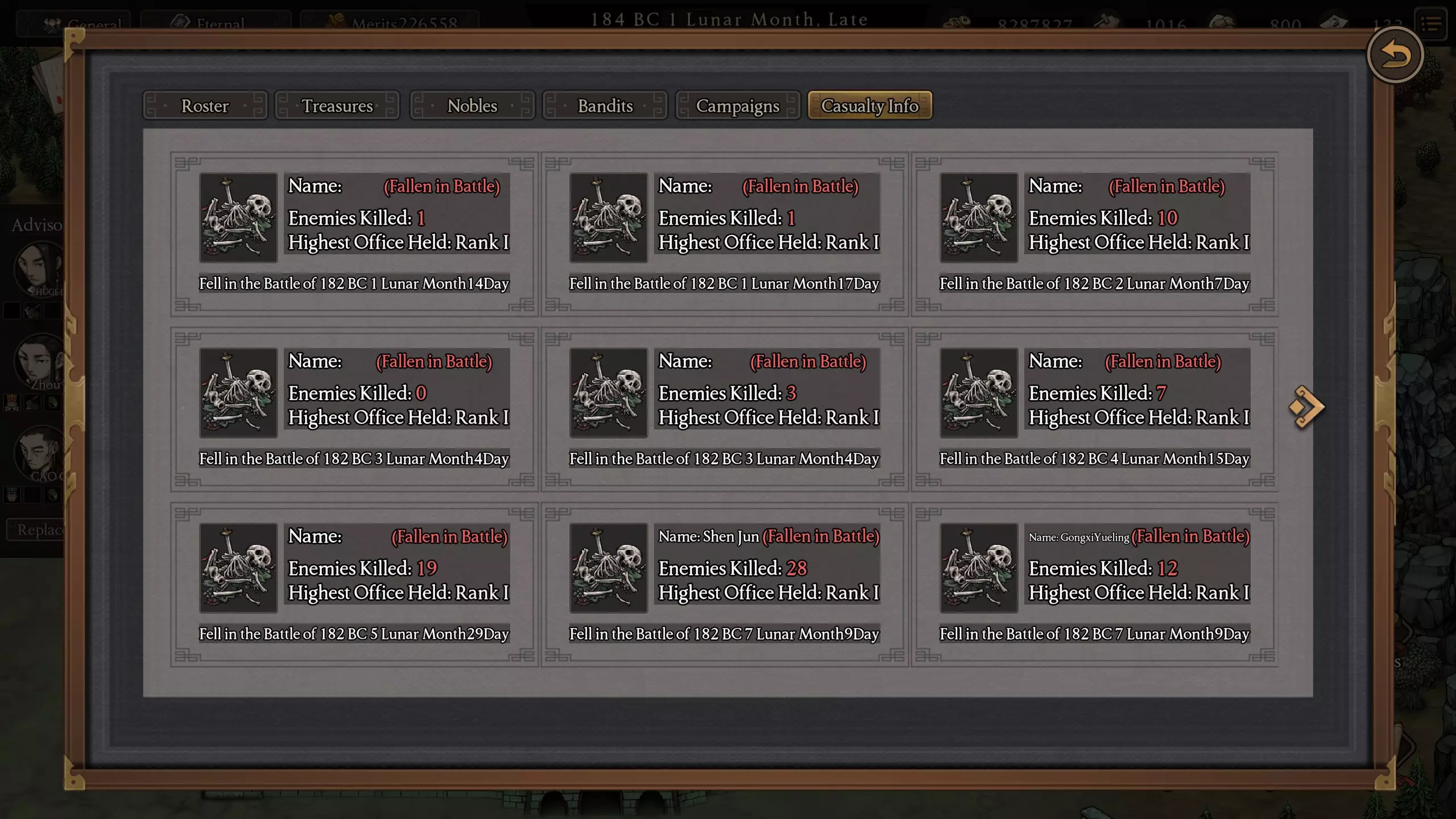 看起来 bots 的功绩值是随机的,导致有些角色的点数显得异常高,不管他们在战场上的实际表现有多糟糕(这些家伙怎么能当城主呢) 所有战役(All Campaigns)