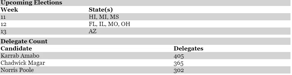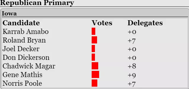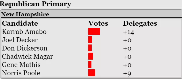 南卡罗来纳州由查德威克·马加尔赢得。随后超级星期二到来,以下是相关结果: