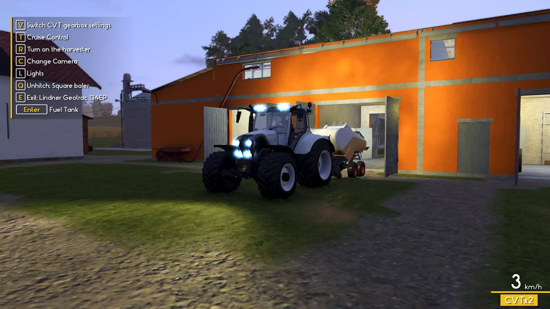 维修、加油、清洗与喷漆 另一个在你前往农场给车辆加油前不太明显的功能,是对你的拖拉机、联合收割机及其他农机进行维修、清洗、加油和喷漆。所有农机都可以重新喷漆,而通过任务获得的旧农机也可以进行维修,从而提升其实用性。这些操作都在中央车库进行,就是有燃油桶的那个地方。你无需将农机开进车库内,只需靠近到出现“Refuel”选项即可。按下Enter键,你就能补充燃油,通过RGB滑块选择并喷涂你喜欢的颜色,或者进行清洗。你也可以将农机开到路边的溪流里进行清洗,但通常这样会导致农机陷进去。这时你可以通过按TAB键并选择呼叫拖车服务。然后您的管道已建造完成,包括连接到最近的道路。只需重新连接管道,就可以用干净的管道继续延伸。