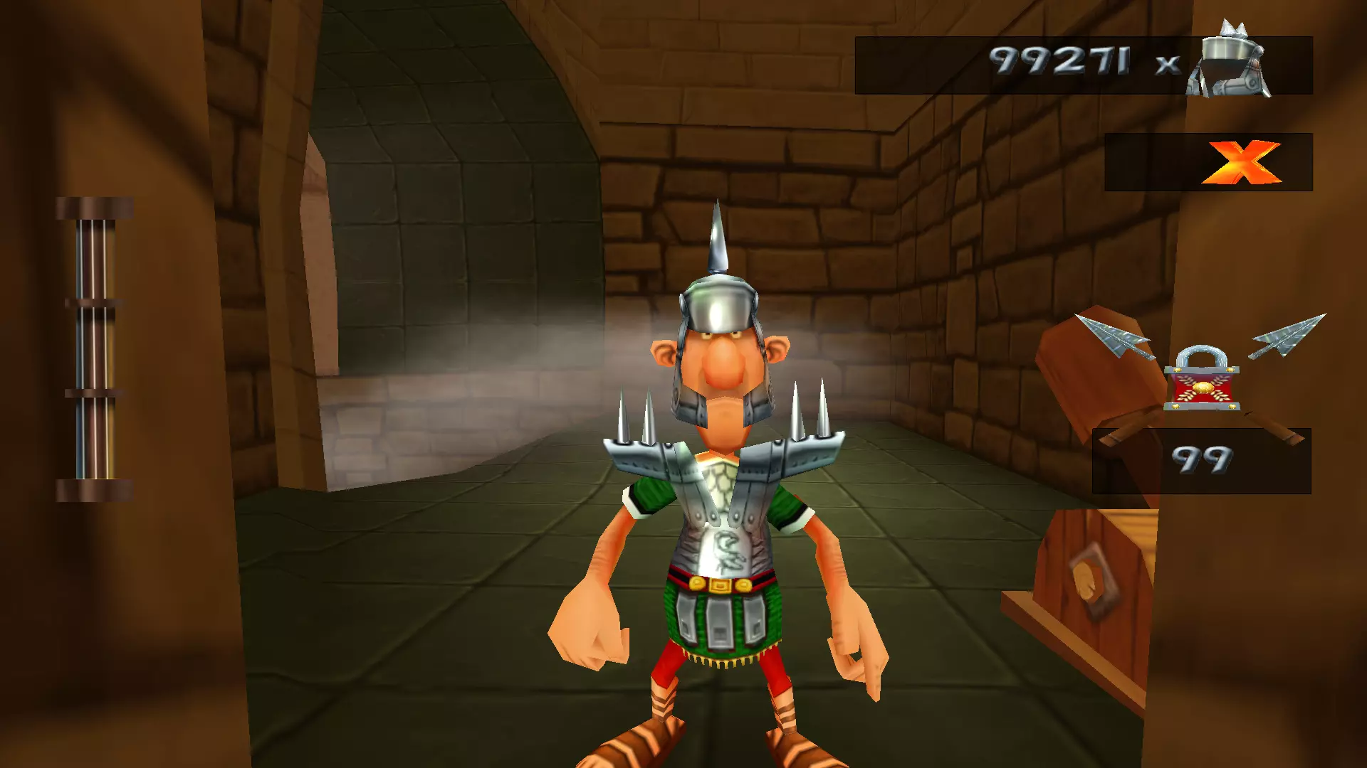 接下来情况更糟。第二个下坡路上也有一场战斗,简直太难了。敌人从四面八方涌来,你得消灭20个军团士兵,他们不仅盾牌能挡住大量攻击,生命值还高得像头大象。你还会发现,需要在一次下坡中收集7500个头盔。您可能会问这怎么可能,那我来告诉您,这可真是个棘手的任务。因为我是个完美主义者,过程中我备受煎熬,甚至还哭过,但最终还是收集到了足够数量的头盔,为奥贝利克斯(哦不对,是奥布莱博利克斯,不好意思)解锁了拉里·克劳夫特皮肤。下副本前,敌人聚集在那里可不是无缘无故的。必须把连击倍数至少堆到20倍才行(当你用同伴扔出的敌人去击中另一个敌人时,能获得10倍加成;如果只是徒手攻击,只有3倍)。之后还得想办法在路上别搞砸了倍数加成,尽可能收集更多金色头盔,更别提你可能会被到处跑的乌龟撞到然后死掉,我就遇到过好几次,当时真的气炸了。