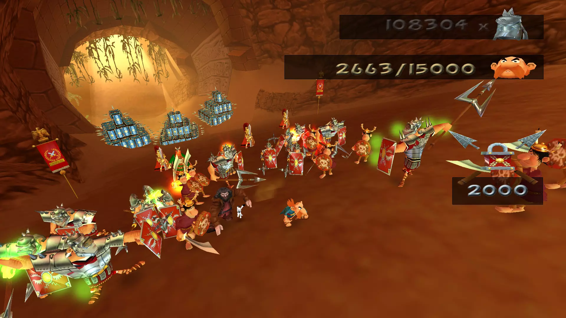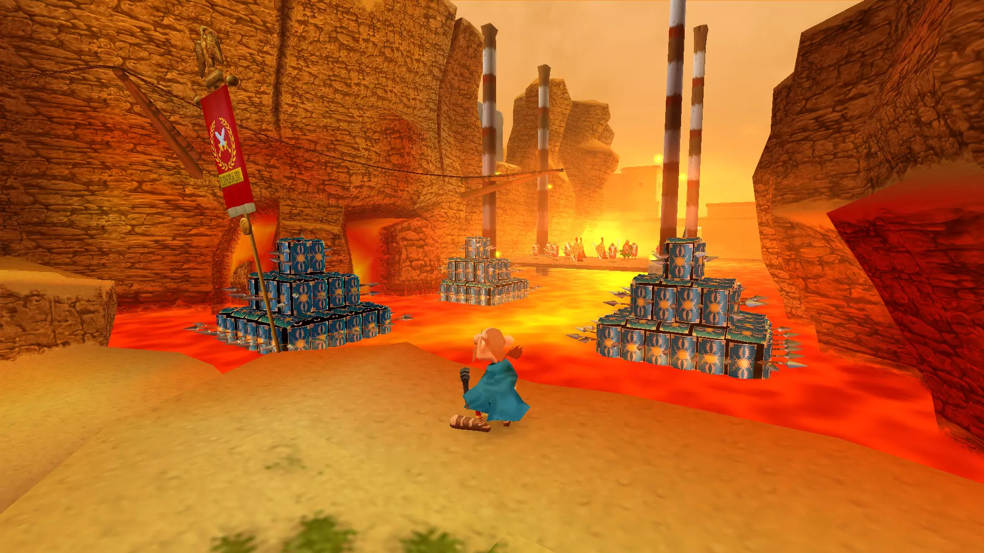 关卡经过了重新设计,玩家需要将那块巨石从原来的五米距离,改为推过整个村庄,同时还要击退不断涌来的敌人。敌人变得更加强壮,并且手持盾牌。虽然没有具体统计过,但这些当地的“类固醇罗马士兵”平均能承受大约10次左右的攻击。