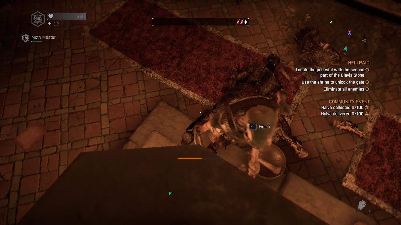 ~ 在【地狱突袭】中达到10级。 你在完成其他成就的过程中就能获得这个成就。随着等级提升,你将获得更好的近战武器(黄金级)和更高的难度。 祝你好运! ~ 在【噩梦】难度下完成【地狱突袭】DLC。 作者:Howlyn 每次看到法师时都要优先集火他们。如果无法集火,就将他们引出视野,再慢慢消灭其他敌人。不要让自己过度劳累,你可以轻松超越一切,改变身体姿势,拖延时间来恢复生命值并重新积蓄力量。 在最后的 boss 房间里,每一波敌人出现时,首先要解决掉那些奔跑的敌人,把它们引到其中一个房间里。不要停留在开阔地带。避开法师的视线。当法师开始进入你所在的房间时,就切换到另一个房间!换房间后再次使用你的药水。最后击杀狂战士和法师。如果法师选择近战,也可以同样将其解决。 对每一波敌人都重复此操作。 最终 boss 采用相同策略:先击杀近战敌人,避开法师的视线,将 boss 引诱进房间,然后用投掷匕首攻击他。持续用投掷匕首投掷他,直至其死亡。我在2024年6月26日完成了这个成就,角色当时只有声望10级,第一次尝试用了54分钟。在最后一个房间死了两次,因为我不够有耐心。 关于噩梦难度通关的几点建议: 1. 你需要较高的传奇等级,并且拥有耐力、生命值和近战战斗点数。如果你的等级较低,可以使用经验获取指南。拳头造成的伤害比你的武器还高。 3. 爬到高处。有些敌人会追击你,但你可以将他们踢下去,或者运用你的技能击碎他们的脑袋。