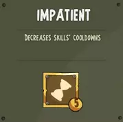 【急躁】- 减少技能冷却时间 等级0:减少0%时间(英雄等级3级解锁) 等级1:减少7%时间 等级2:减少14%时间 等级3:减少21%时间 等级4:减少28%时间 等级5:减少35%时间