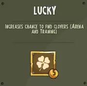 幸运 - 提升找到四叶草的几率(竞技场和训练中) 等级0:5%几率(英雄等级15级解锁) 等级1:7.50%几率 等级2:10%几率 等级3:12.50%几率 等级4:15%几率 等级5:17.50%几率