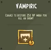【吸血】- 击杀敌人时有几率恢复25%生命值 等级0:0%几率(英雄等级15级解锁) 等级1:5%几率 等级2:10%几率 等级3:15%几率 等级4:20%几率 等级5:25%几率