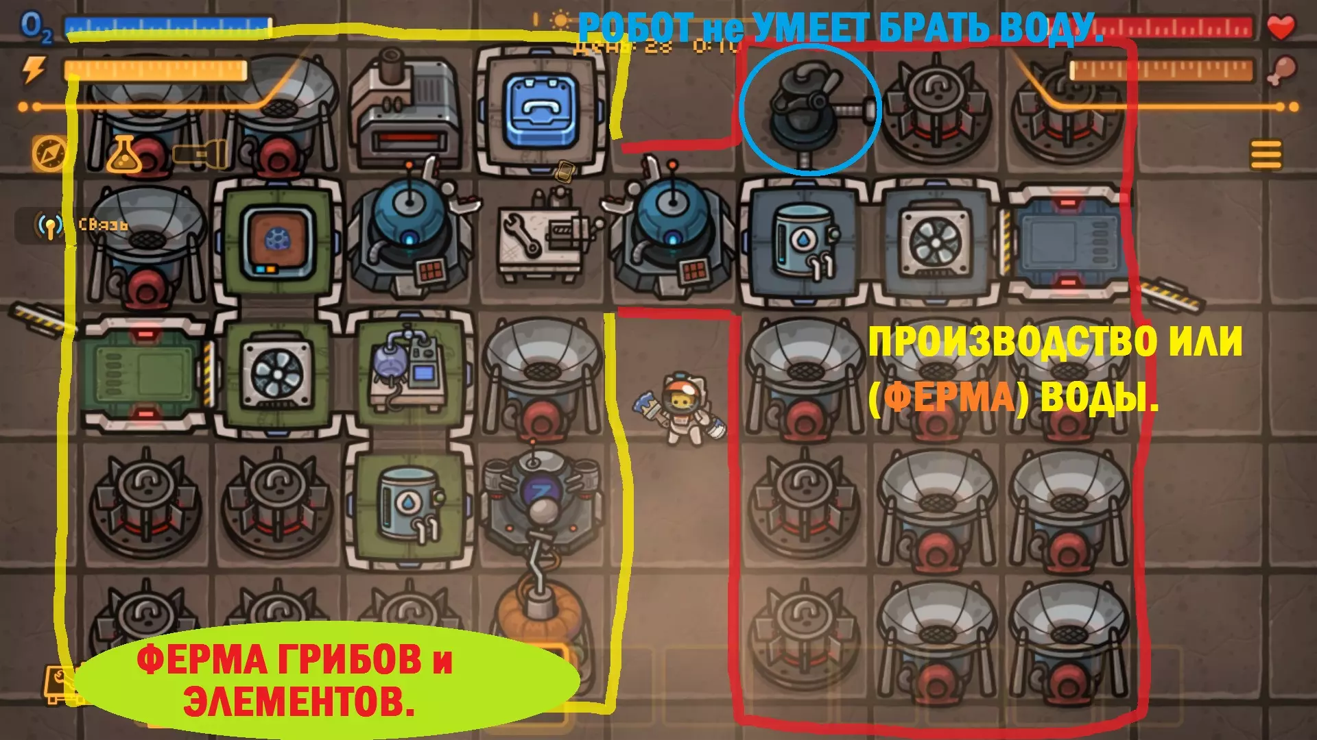 游戏中缺少的内容 1) 没有炮塔 2) 对基地的攻击 3) 首领敌人 4) 资源运输系统(管道或传送带) 5) 收集机器人不收集苹果 6) 机器人无法从水泵取水 7) 田地里的蘑菇不发光 8) 无法自动开采废金属 9) (工厂方面)箱子内没有秩序,机器人不管将资源放入哪个箱子