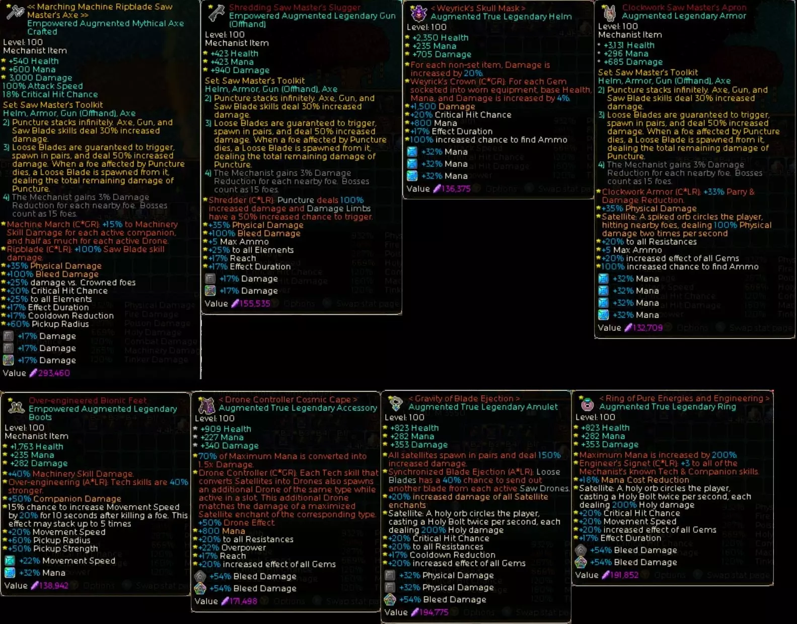 我尝试构建了多种能在【英雄旧忆】神话XV无尽模式400层以上战斗的机械师Build。接下来将结合性能对比,为大家介绍各个流派Build的特点。打造我心目中最强的机械师。