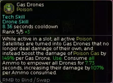 使用【Gas Drone - 瓦斯无人机】进行强化时需要消耗【Ammo - 弹药】,每发弹药可使【Poison Gas - 毒气】伤害提升约100%。弹药上限越高,强化效果越强。 build总结