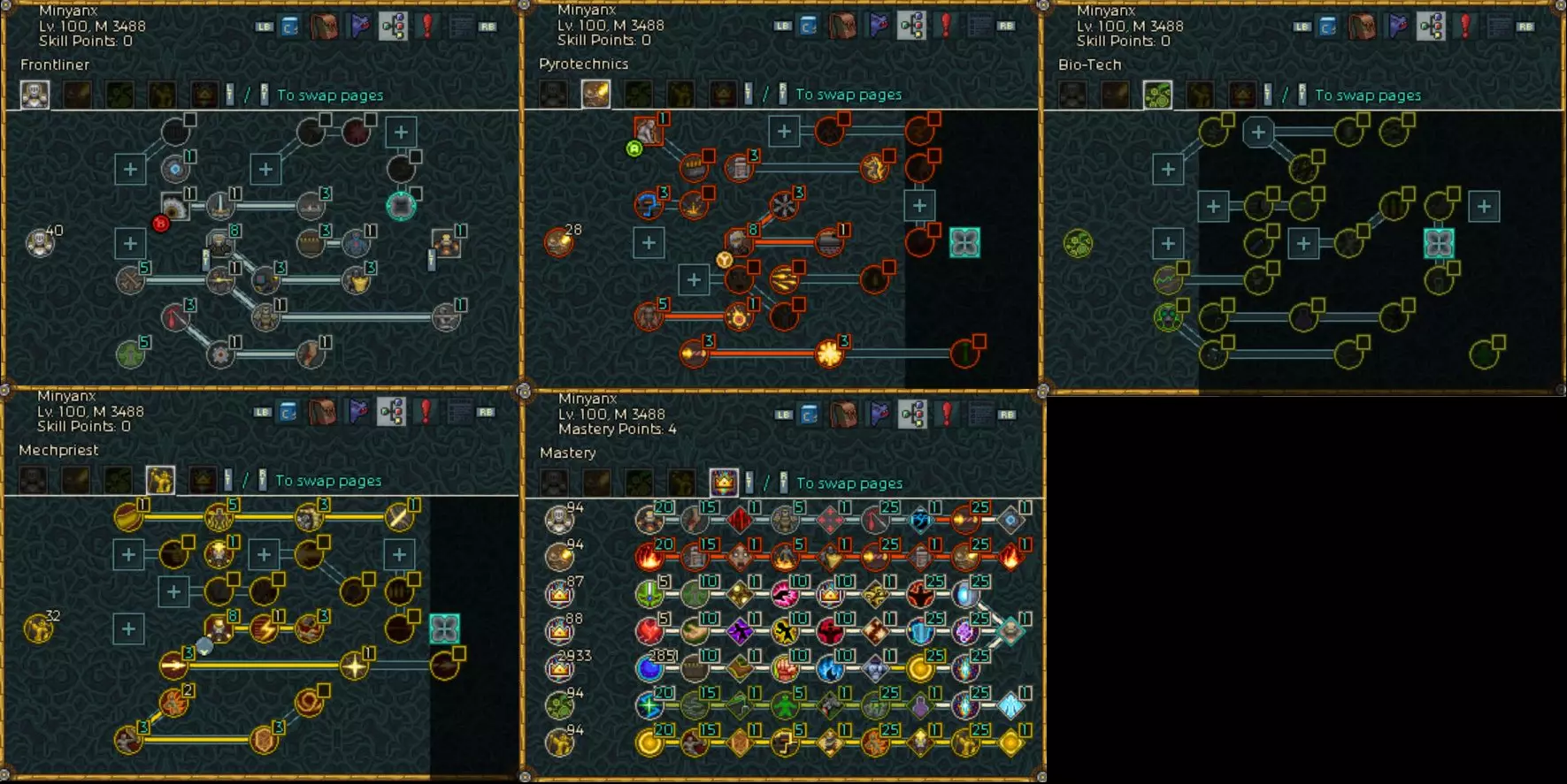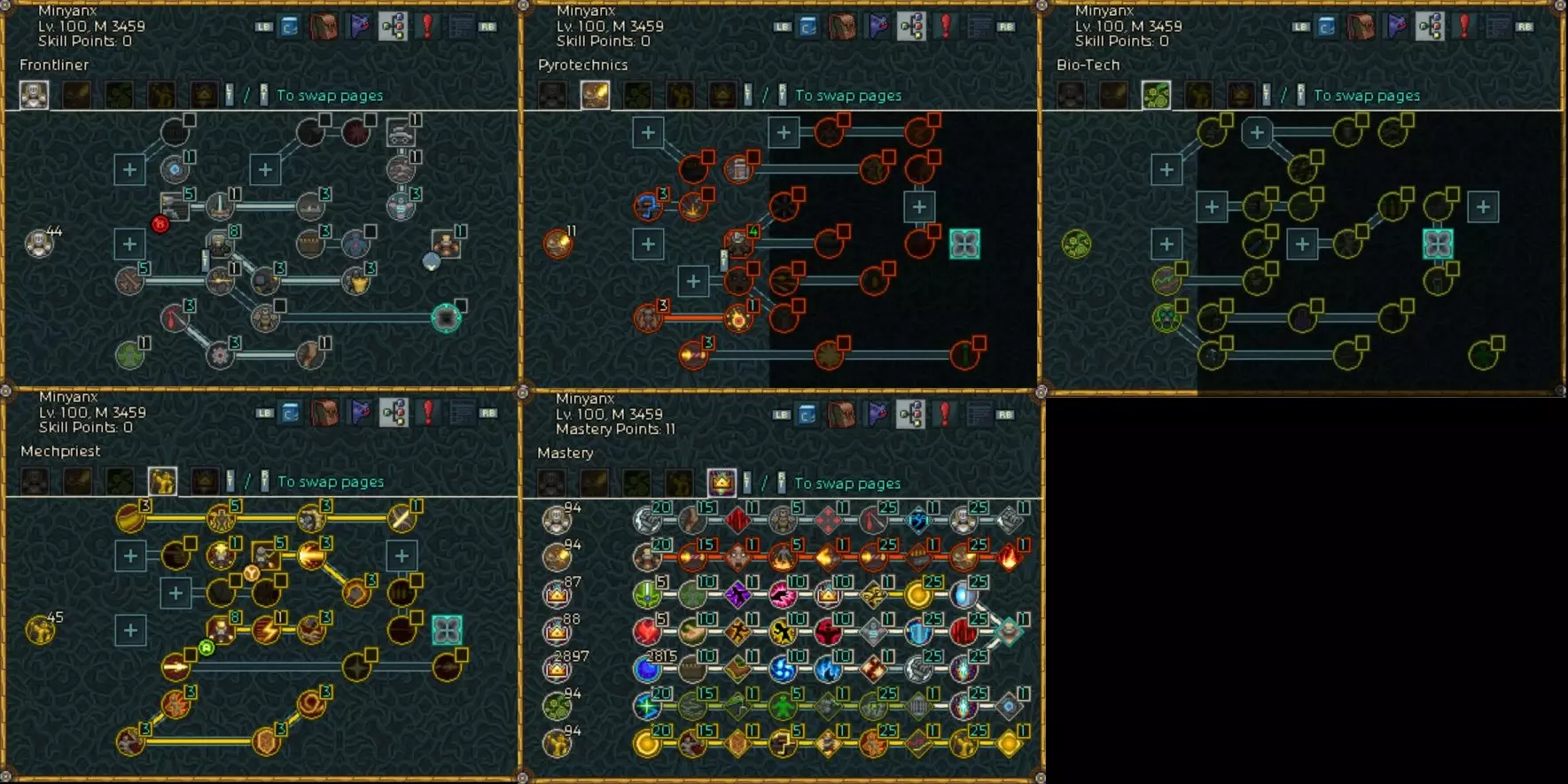 穿刺技能的倍率可以通过英雄自身的各种被动技能大幅提升,装备方面的话,我认为上面碎颅者的固有技能比较好。或者说,只有这个能用。 注意事项:正如【优点与缺点】部分所述,该build要触发伤害爆发,必须先击倒敌人集群中的至少1个目标。但如果敌人过强,就会在这里卡关无法推进。这就是该build的局限性。我个人目前大概能打到500层左右。5.其他流派 这里介绍的是尚未构建或已构建但不适合自己的其他机械师流派方案。这些流派或许构建起来会很有趣。 ・杀戮机器人流派
