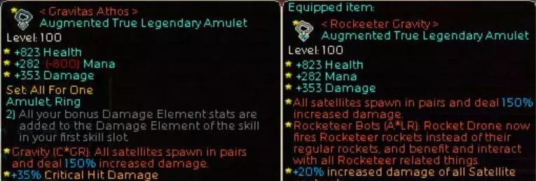 关于是选择散件护身符和戒指,还是使用【All for One】套装的问题。使用【All for One】套装的话,火焰属性值可以达到3000%左右,但经过测试,其对火焰属性流派【Rockteer】的威力提升并不是很大,大概也就伤害翻倍的程度。既然如此,将最大法力值提升200%并转化为攻击力,或者提升无人机等级,会使角色变得强得多,所以才采用了这样的配装。 火箭无人机与战斗机器人的数量比例