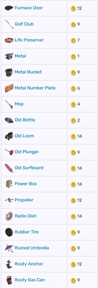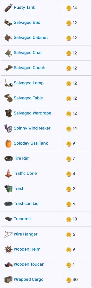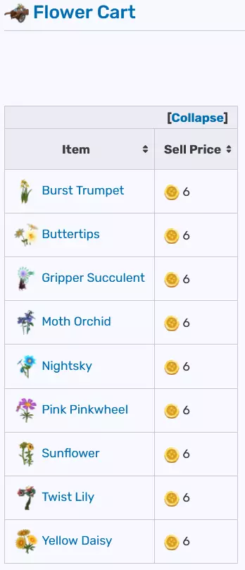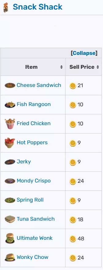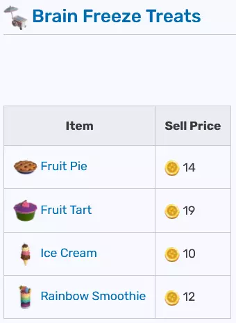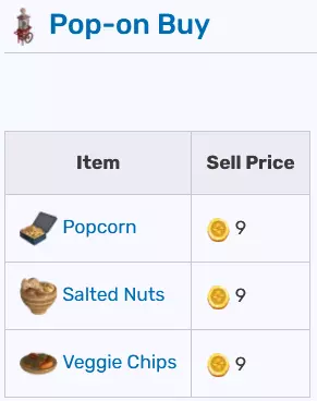 你可以在一张图片中找到可在不同摊位出售的物品及其价格。气球推车