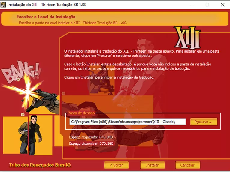 安装翻译需在屏幕修复步骤之前进行。请记得以英语语言安装。 制作团队:叛逆者部落 安装步骤:打开安装程序,点击“下一步”直至提示选择游戏安装文件夹(XIII - Classic)。此时,选择“浏览...”并导航至游戏安装目录。找到游戏文件夹(XIII - Classic)并选中,程序将识别该目录。最后,点击“安装”即可开始游戏!