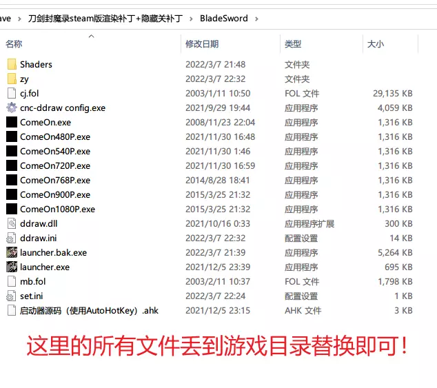 直接将所有文件覆盖到游戏目录即可,已集成隐藏关补丁。 默认是简体中文,如果想修改语言,看下面说明。 刀剑封魔录渲染补丁+隐藏关补丁【2022.03.07更新】 效果截图在下面