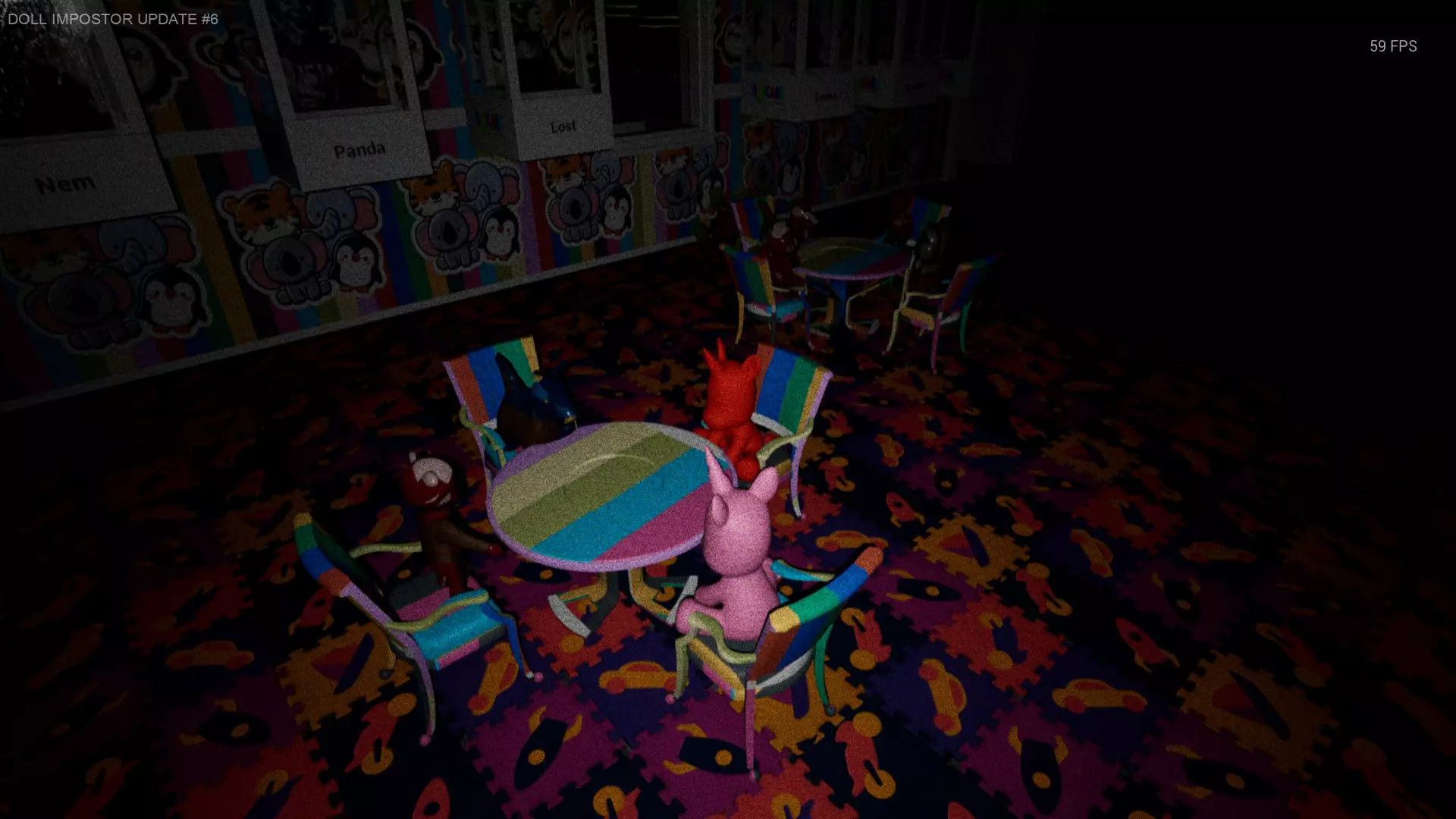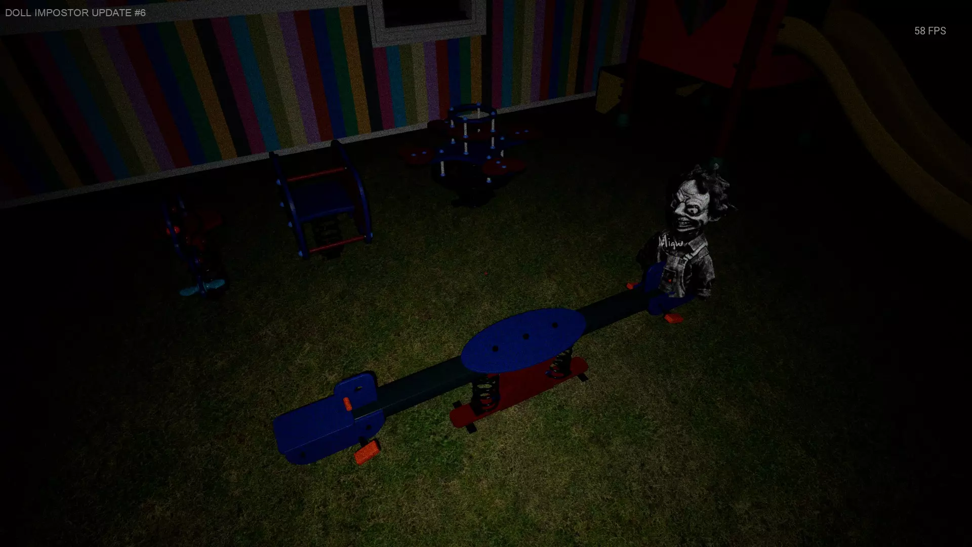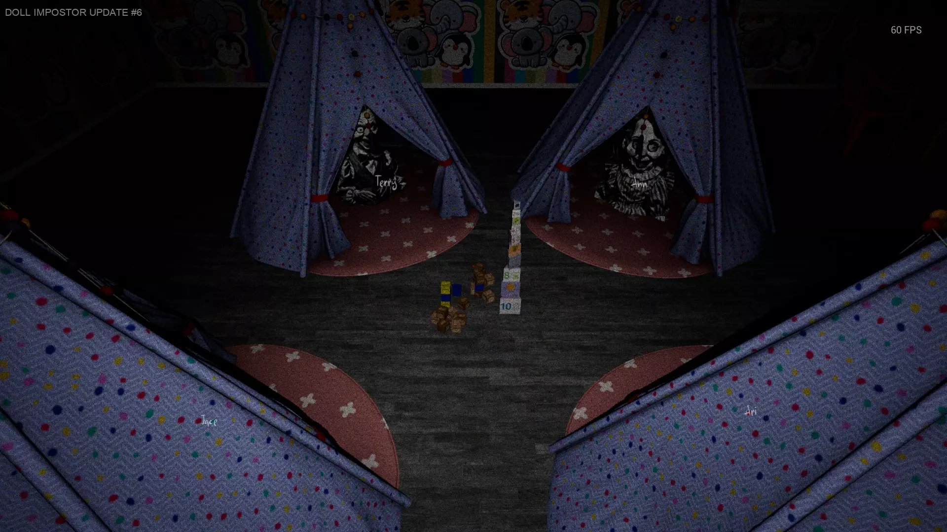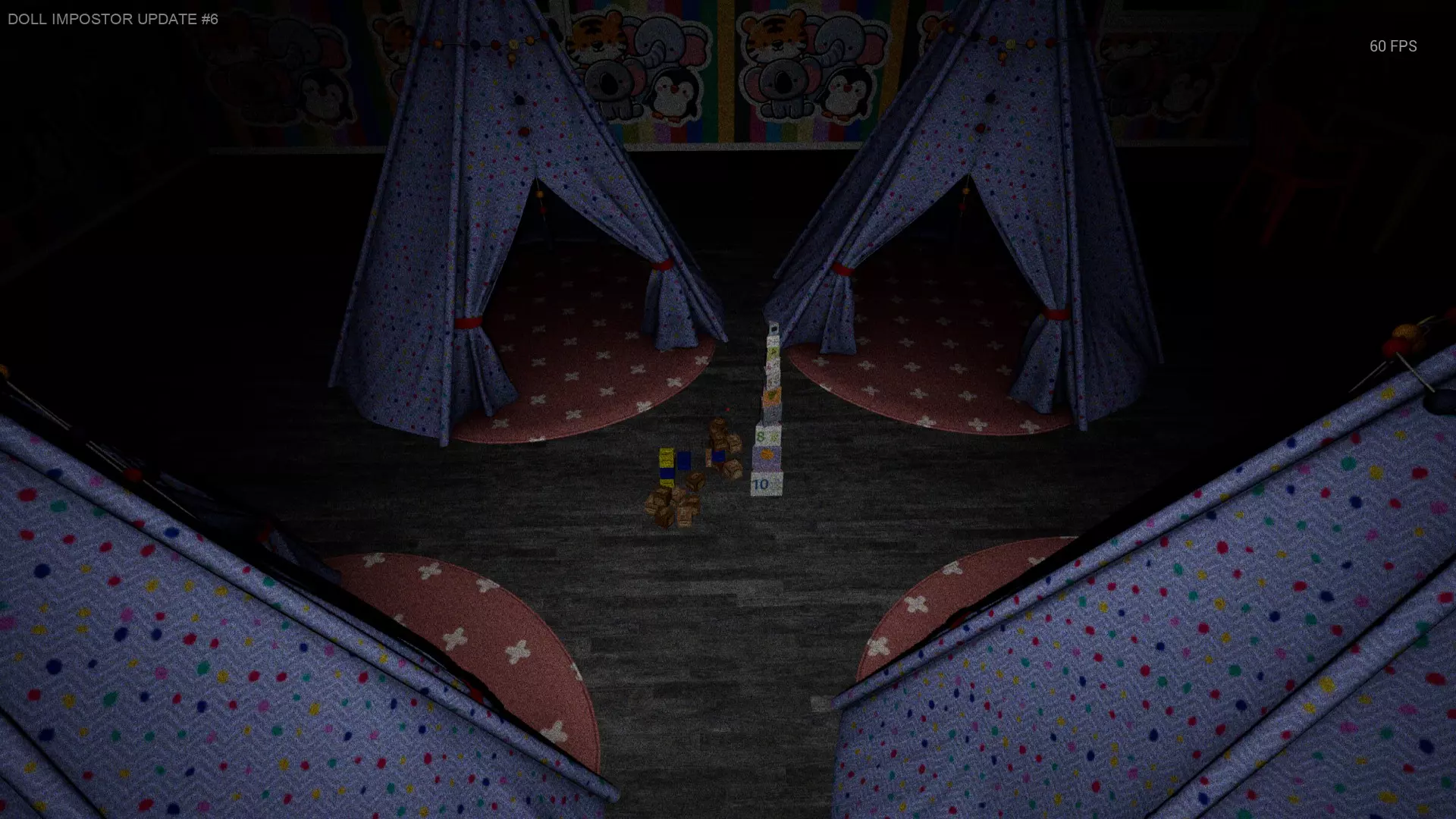 平台 街道左右两侧有木质游戏建筑,玩偶可能会坐在上面。(仅在其中一个建筑上被记录过,但也有可能坐在另一个上面) 普通平台