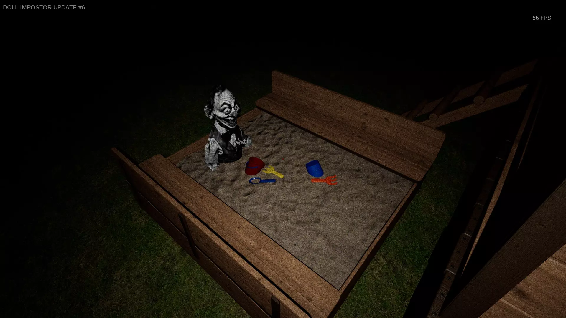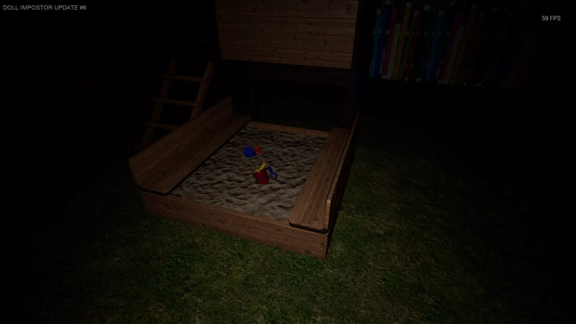 沙盒区域 房子前面的地上有很多沙子,娃娃可能坐在那里)