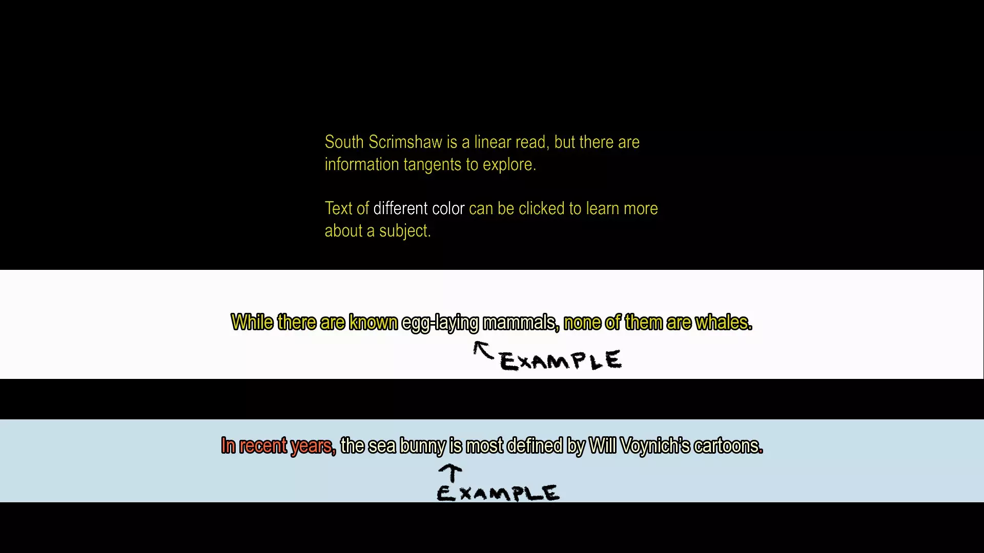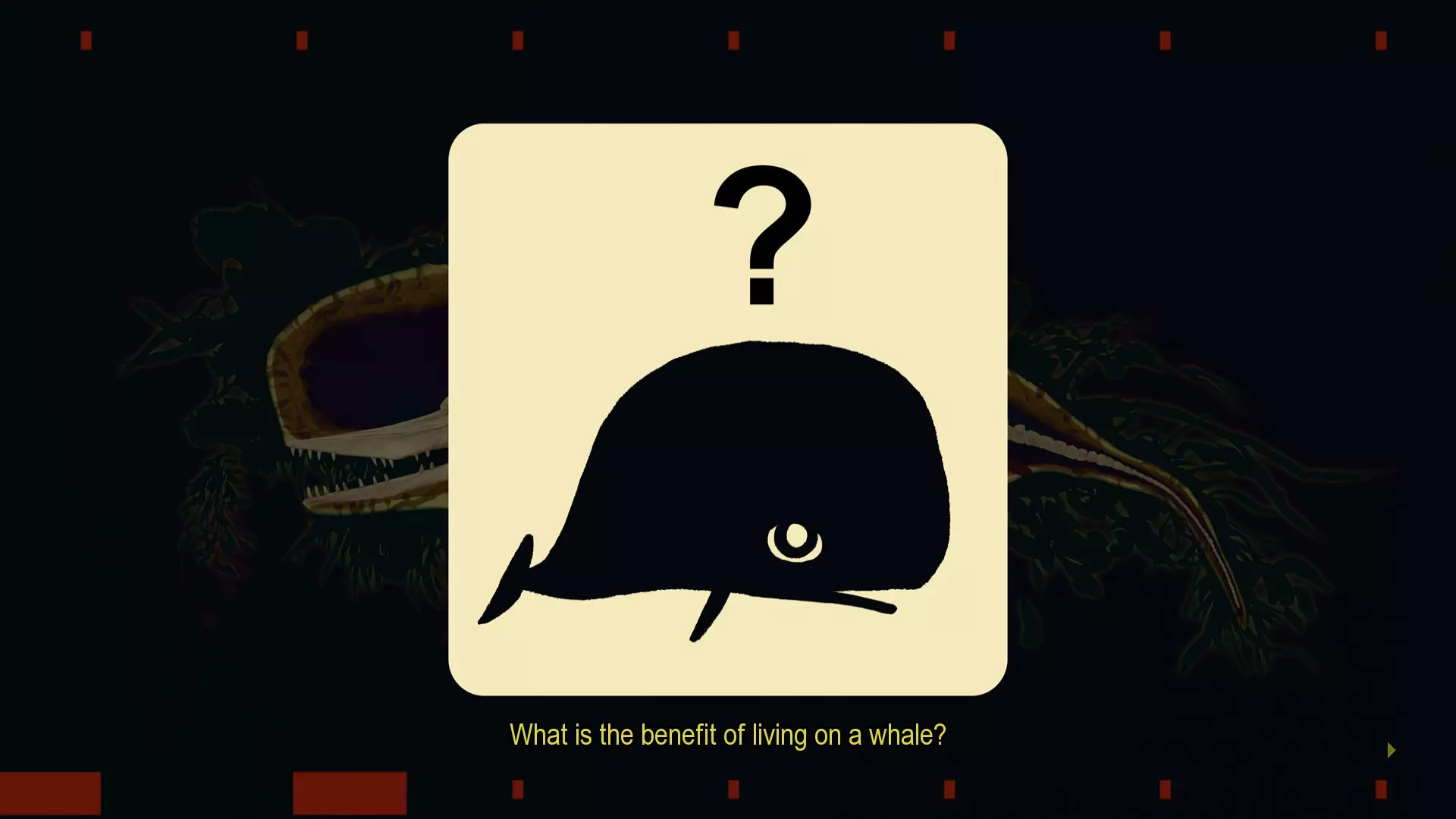 在故事的某些情节中,你可以点击白色文字来获取关于生物的额外背景信息。其中一处会触发一个容易错过的成就。 攻略: 一直点击推进游戏,直到在第二章看到这个画面。