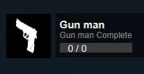 这是一篇关于《Gun man》游戏100%成就达成的帖子,分享了达成该成就的三步流程:安装游戏、打开游戏、达成100%完成度,还配有成就达成的相关截图。