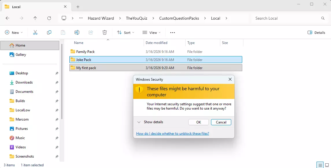 此警告来自Windows安全系统。Windows会为这些文件添加安全标记,并在文件被移动或修改时显示警告。 在这种情况下,这些文件只是游戏的问题包文件,因此你可以安全地忽略该警告并点击确定。 上传或管理你的创意工坊项目 点击你的某个数据包上的Steam按钮