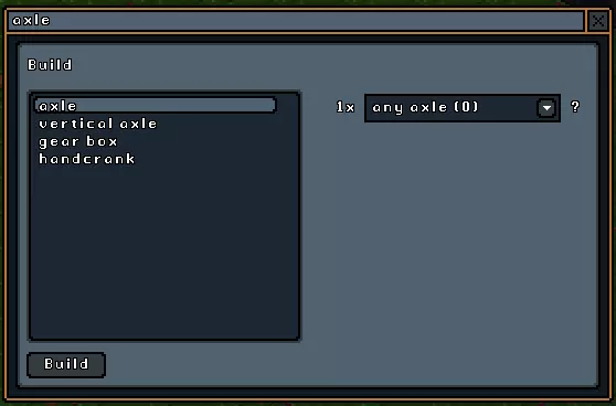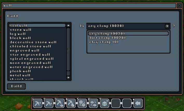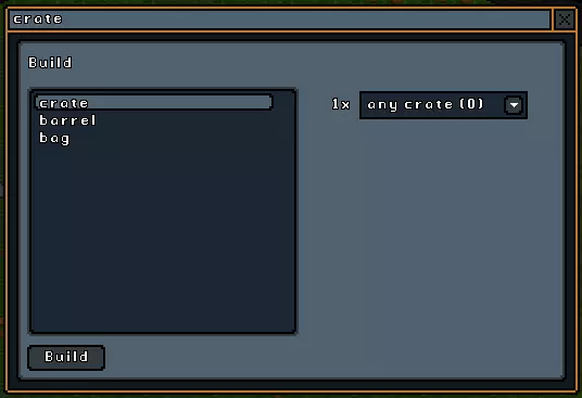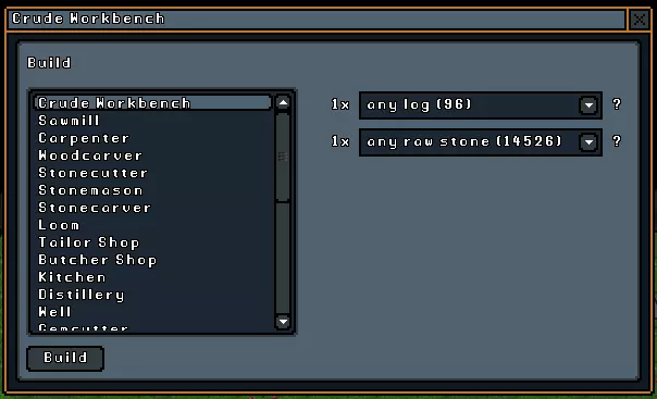 建造 建造子菜单包含你使用地形和农业指令收集的所有原材料来创建物品所需的工具。