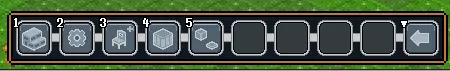 1. 工坊 2. 机械装置 3. 家具 4. 存储 5. 地形子菜单 工坊: