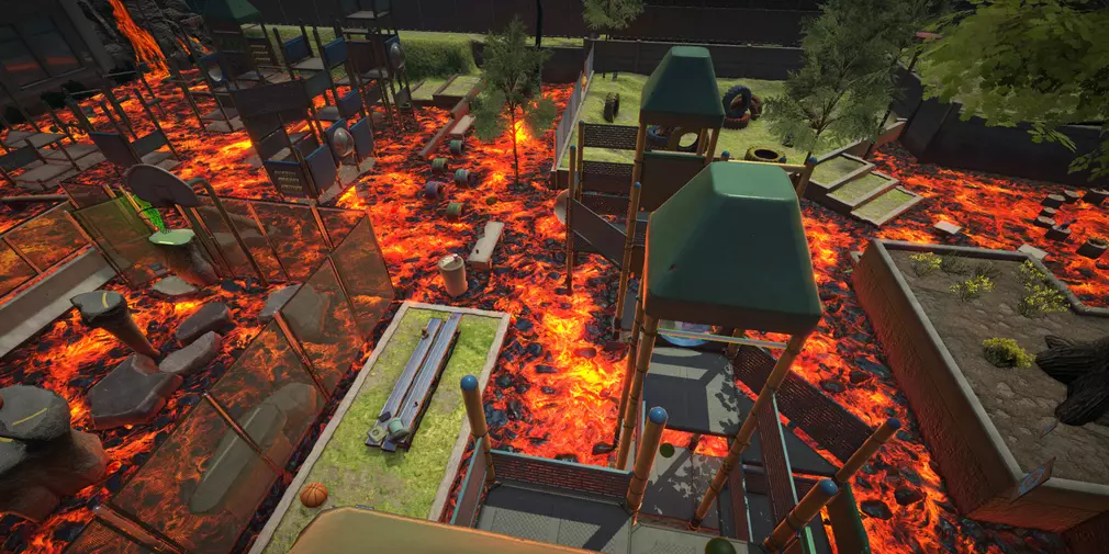 主角的家。该场景出现在序章关卡。在这里我们第一次见到妹妹,她提议和小主角玩“地面是岩浆”的游戏。我们的教学关卡就是这样进行的。我们还能听到孩子们母亲的声音,但和父亲一样,在游戏过程中我们始终看不到她。玩家在这里第一次也是最后一次见到以元素形态出现的黏液领主。地下室场景是家的一部分,所以我不会把它们分开。由于发布更新,我们了解到了许多新信息。首先,角色因父母频繁争吵而非常焦虑,此外还加上了自身的社交恐惧困扰。其次,他为了逃避这些烦恼经常躲在地下室(游戏中有专门的漫画讲述此事)。