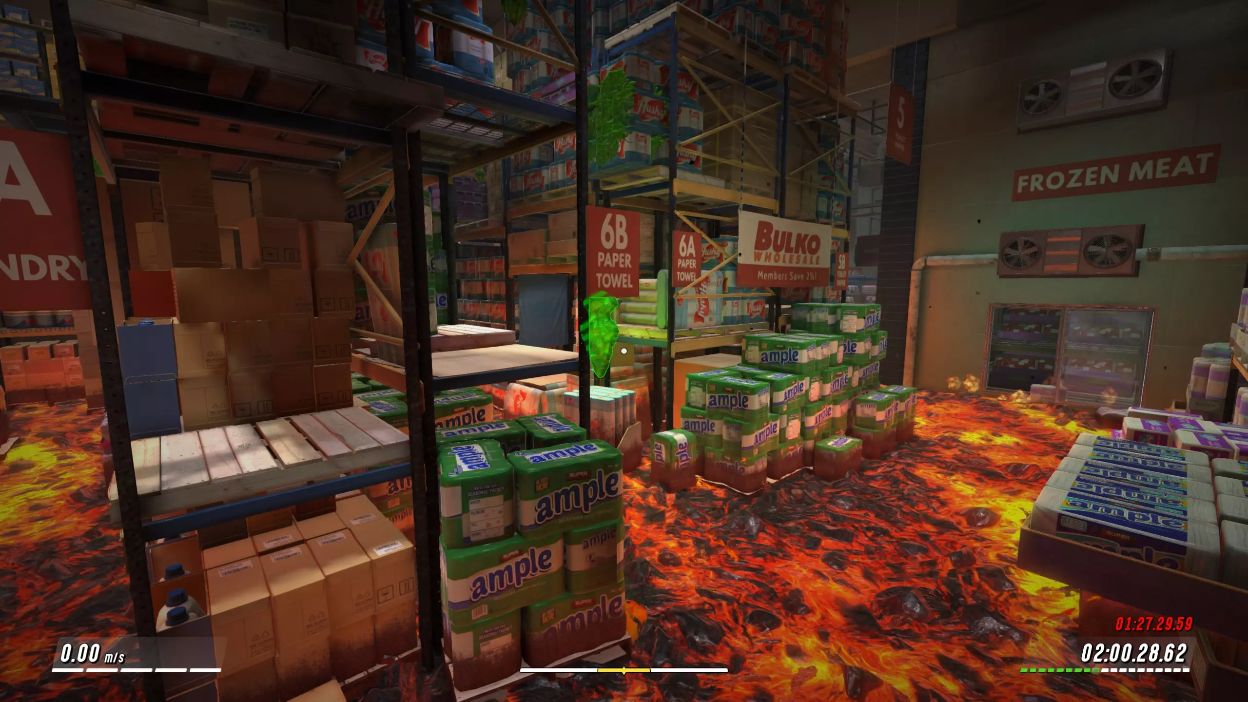 超级市场批发区。该场景出现在批发区关卡。在这家超市里,主角的父亲担任经理。根据剧情,周一被宣布为超市员工可以带孩子来上班的日子。父亲带着女儿和儿子一起前来。显然,当所有人都离开超市后,主角们决定玩他们最喜欢的游戏。通过这个场景,我们可以了解到父亲在吸烟,而且他的孩子们非常爱他。