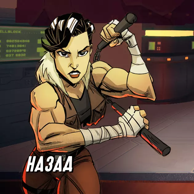 哈扎德——前斯莱奇超级士兵(可能是他的儿子)。多年来,他在芒特维尔接受药物注射,目的是成为斯莱奇超级士兵。在G.A.T首次行动期间,他被珍·福塞从囚禁中救出。珍成功解放了被斯莱奇勋爵控制的哈扎德的心智。哈扎德很快成为团队中宝贵的朋友和成员。哈扎德是玩家可以操控的第一个角色。同时,在中毒状态下,其服装颜色变为紫色,背带颜色变为黄色。T.O.X.I.C.对抗专家