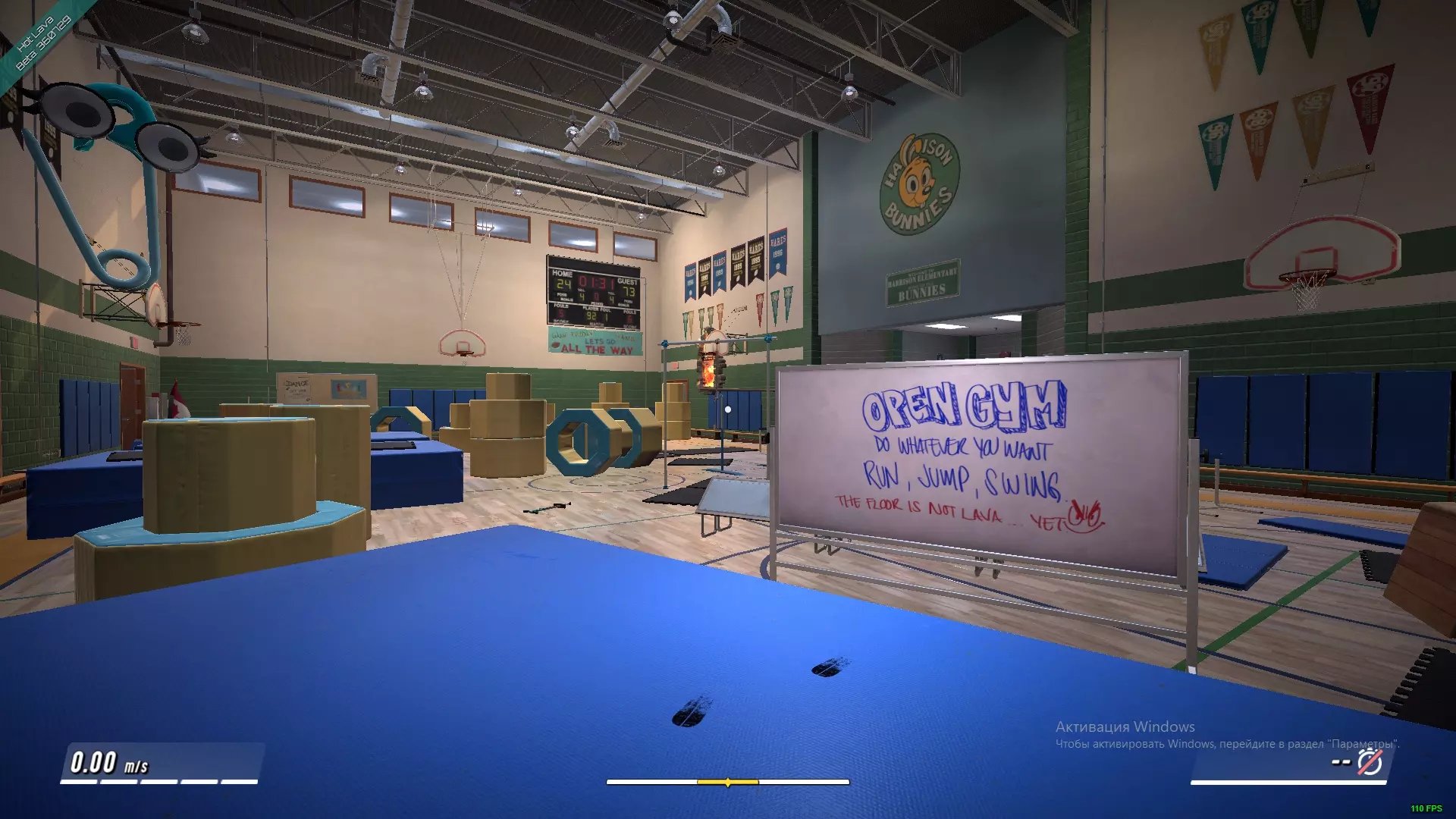 体育馆。尽管规模不大,但它在游戏的三个关卡中均有出现(其中两个关卡中,它是整个大厅场景)。该体育馆专门为游戏、体操训练和力量训练配备了设施。玩家可以在这里练习技能并学习游戏基础。它是【学校】的一部分,【小不点】就在这里学习。