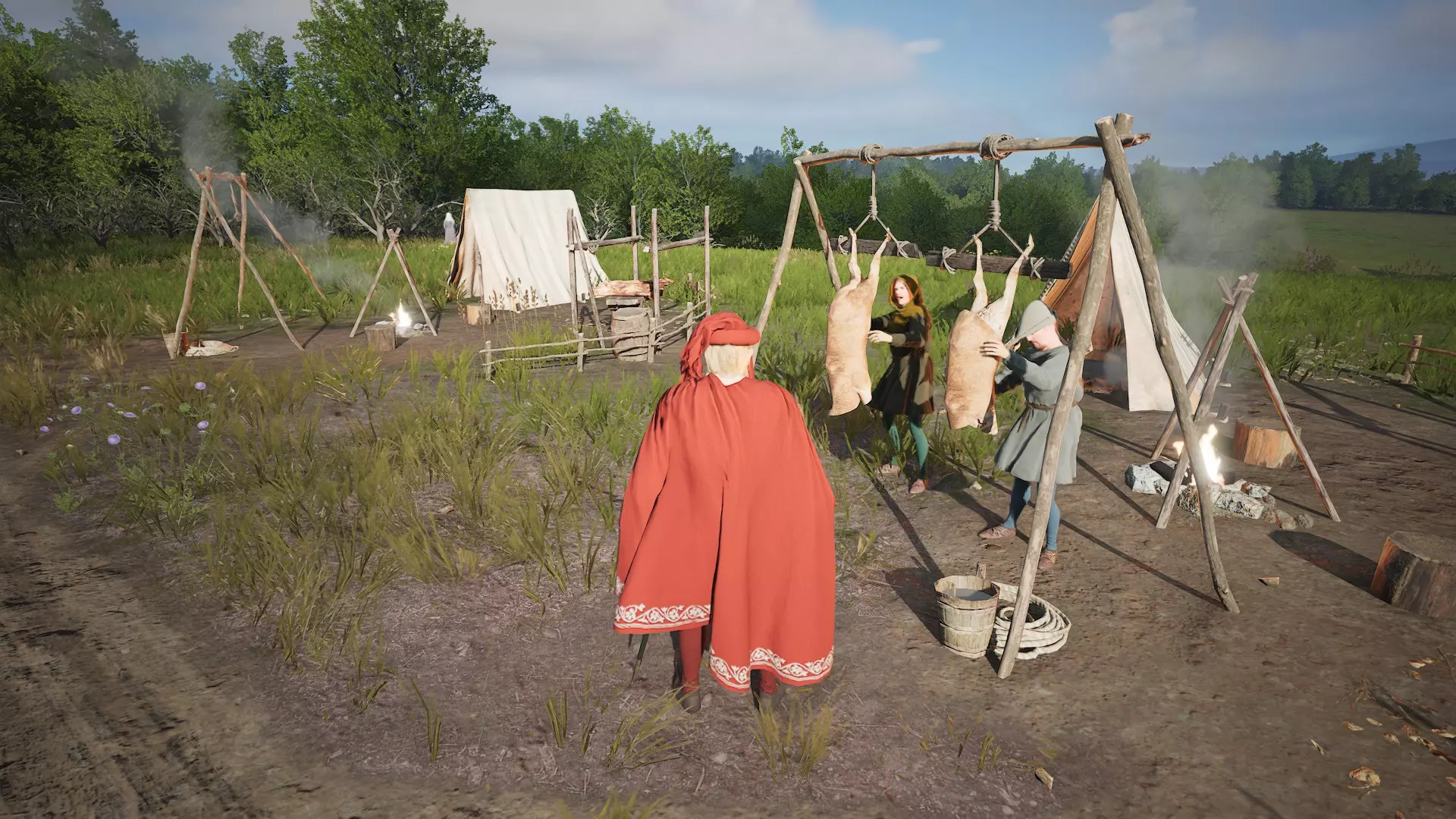 3. 野生动物肉类 普通兽群每年可提供40单位肉类。你可以在2个狩猎营地安排2个家庭进行狩猎。由于营地的储藏室空间较小,每个狩猎营地仅分配1个家庭!将狩猎上限设置为兽群最大数量的一半。同时要注意,当公共仓库中的兽皮装满时,猎人会停止狩猎。如果在你能腾出家庭分配到仓库或制革厂之前就发生这种情况,你可能需要准备一个备用狩猎营地,让猎人可以在你处理兽皮期间继续使用。 通过发展点数【陷阱】和【高级剥皮】,普通兽群的肉类产量可以翻倍,达到每年约80单位。 若使用4个狩猎营地并安排4个家庭进行狩猎,丰富的鹿群每年可产出高达100单位肉类。别忘了将狩猎上限设置为20,而非默认的10。 如果在庄园激活【狩猎场】政策(该政策会使农作物产量减半,但能提高鹿的生成率)的情况下捕猎丰富的鹿群,你的狩猎营地每年的肉类产量最高可达240。 再加上【陷阱布置】和【高级剥皮】技能,每年肉类产量可提升至450。此时,你可能需要留意盐的获取,以便用肉类制作香肠,这样可以减少腐败,同时为你的食物来源增添新的选择。 启用【陷阱布置】后,你还可以在远离鹿群的地方建造狩猎营地,将其工作区域限制在周边范围,这样它们就只会从陷阱中收集肉类。进行单纯诱捕的营地数量没有限制。