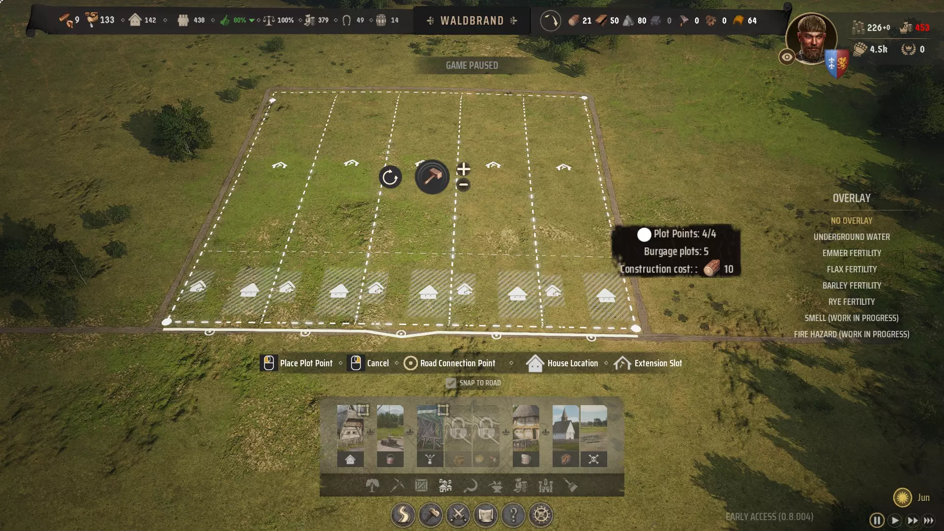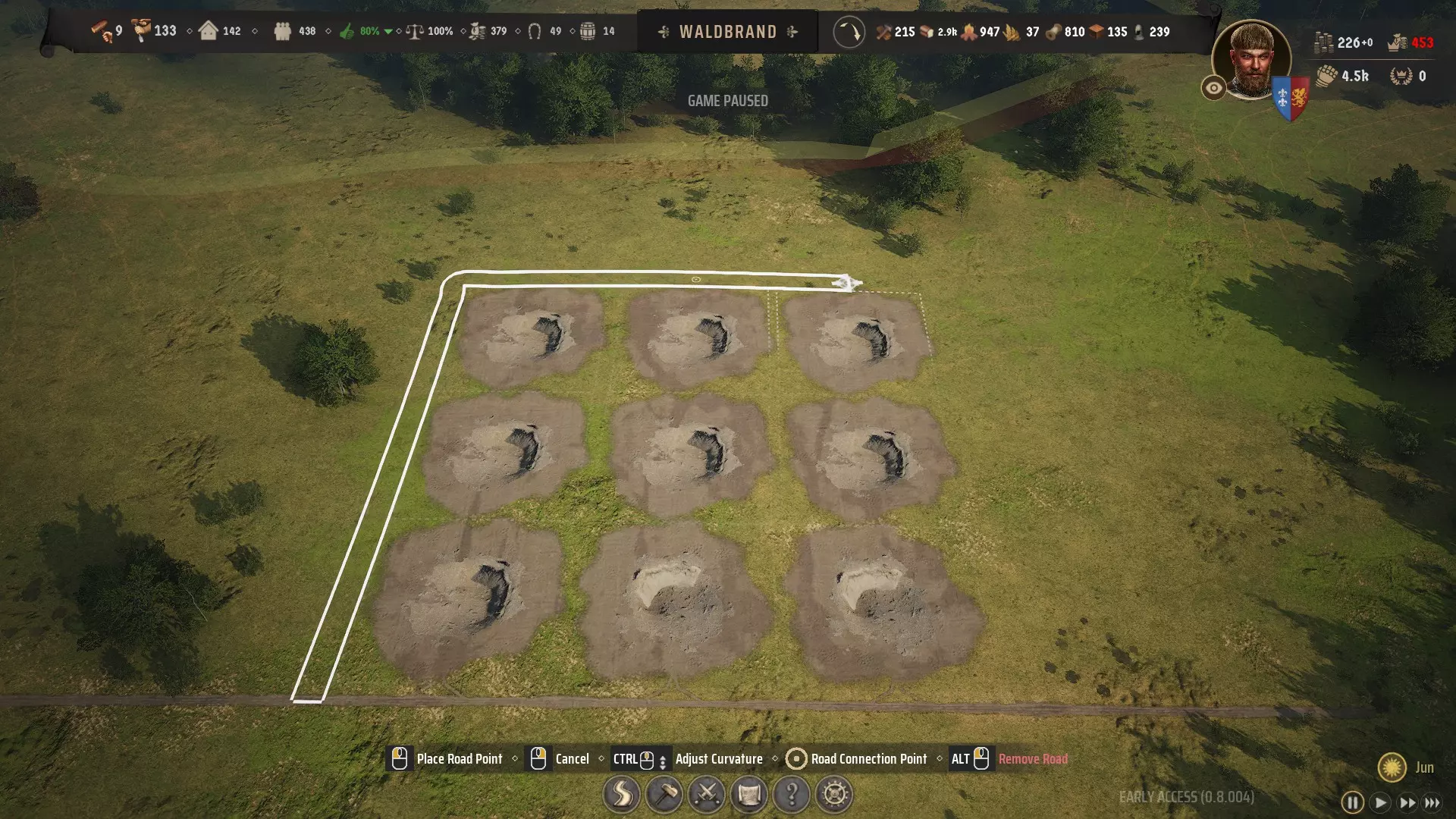 用道路将9个尸体坑围起来,然后删除这些尸体坑,道路围起来的空间就可以用来建造一排房屋。不过不要建造单个房屋,而是点击“-”按钮,直到只剩下四到五个建筑地块。
