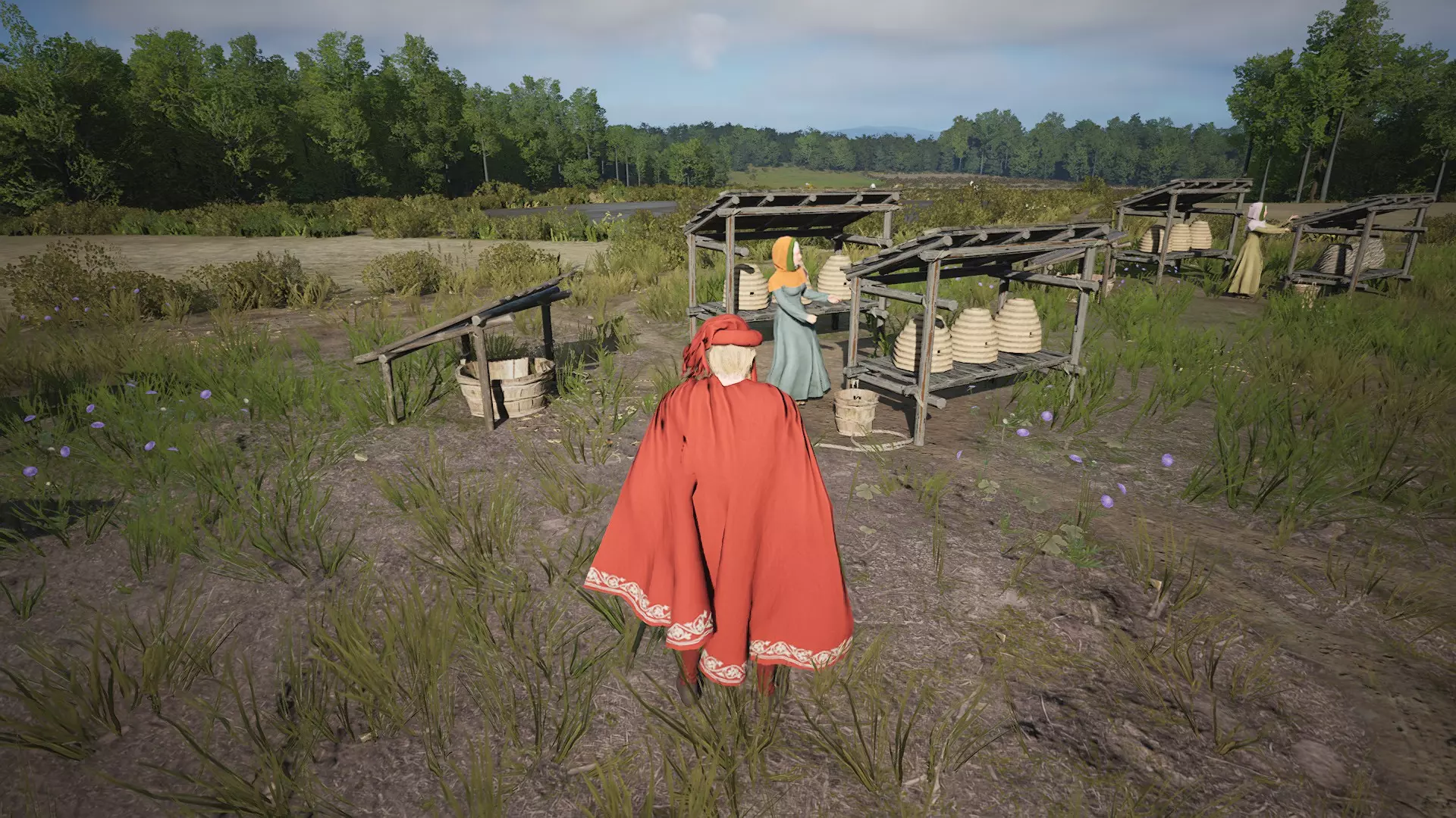 拉近镜头时,你能听到蟋蟀的鸣叫声。 干旱会大幅降低田间作物的年度产量,同时还会暂时加快所有储存食物的腐坏速度。 应对干旱的唯一方法是:要么手动强制提前收割以尽可能挽救作物,要么从技能树中学习【灌溉】发展项目。否则,你将损失一整年大部分的田间作物收成。不过目前,干旱暂未对苹果或蔬菜产生影响。