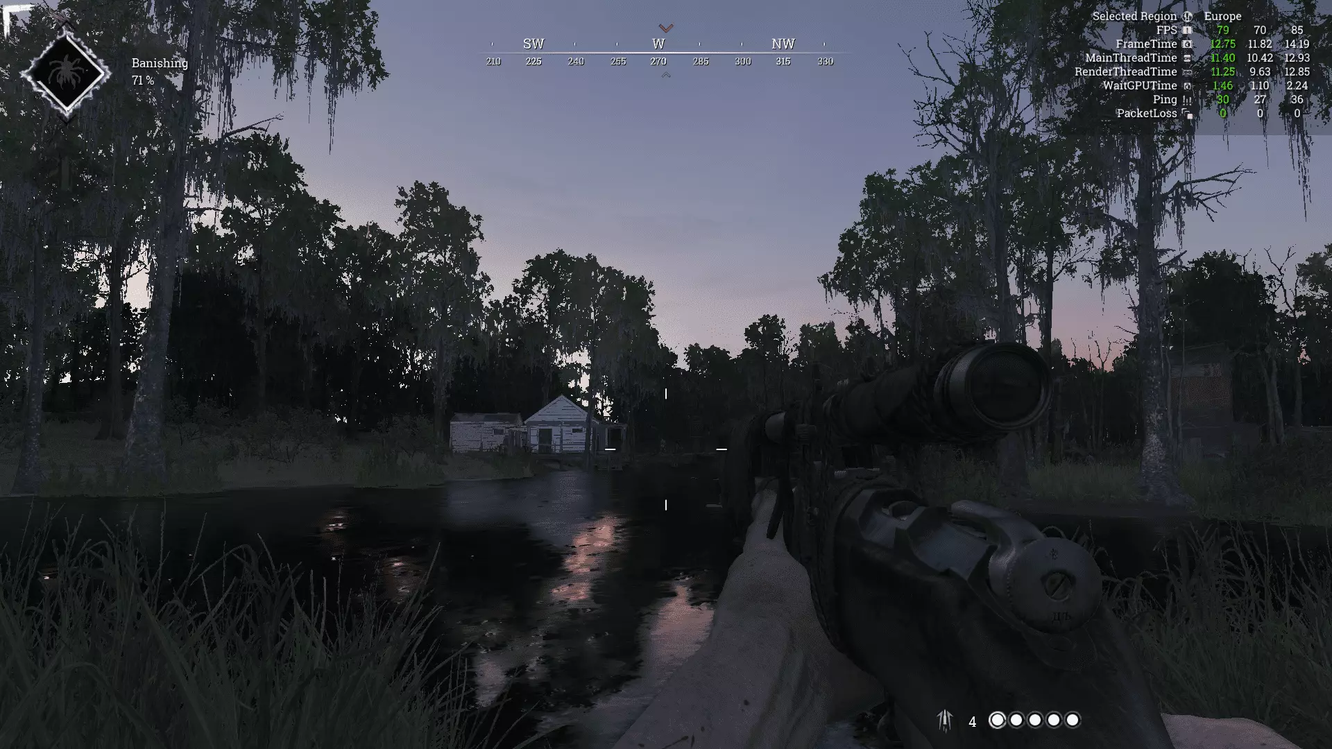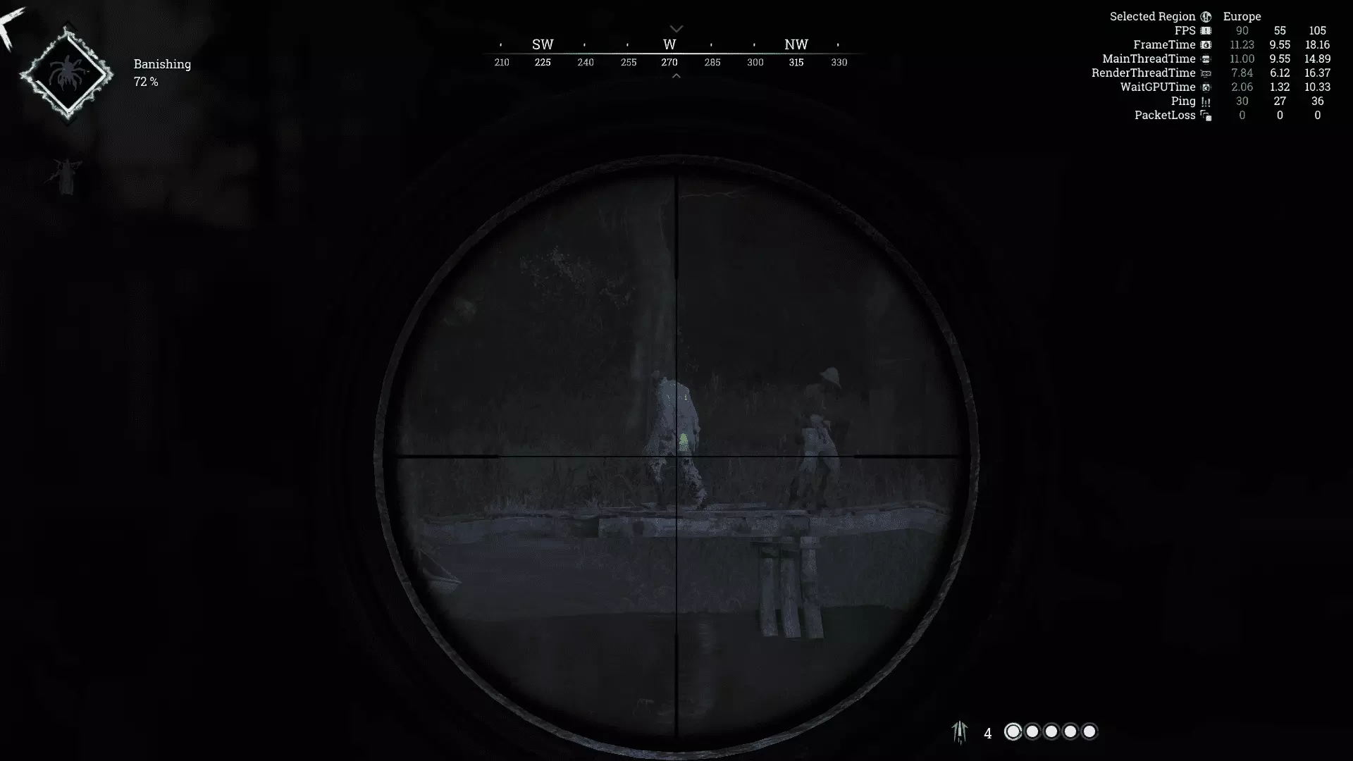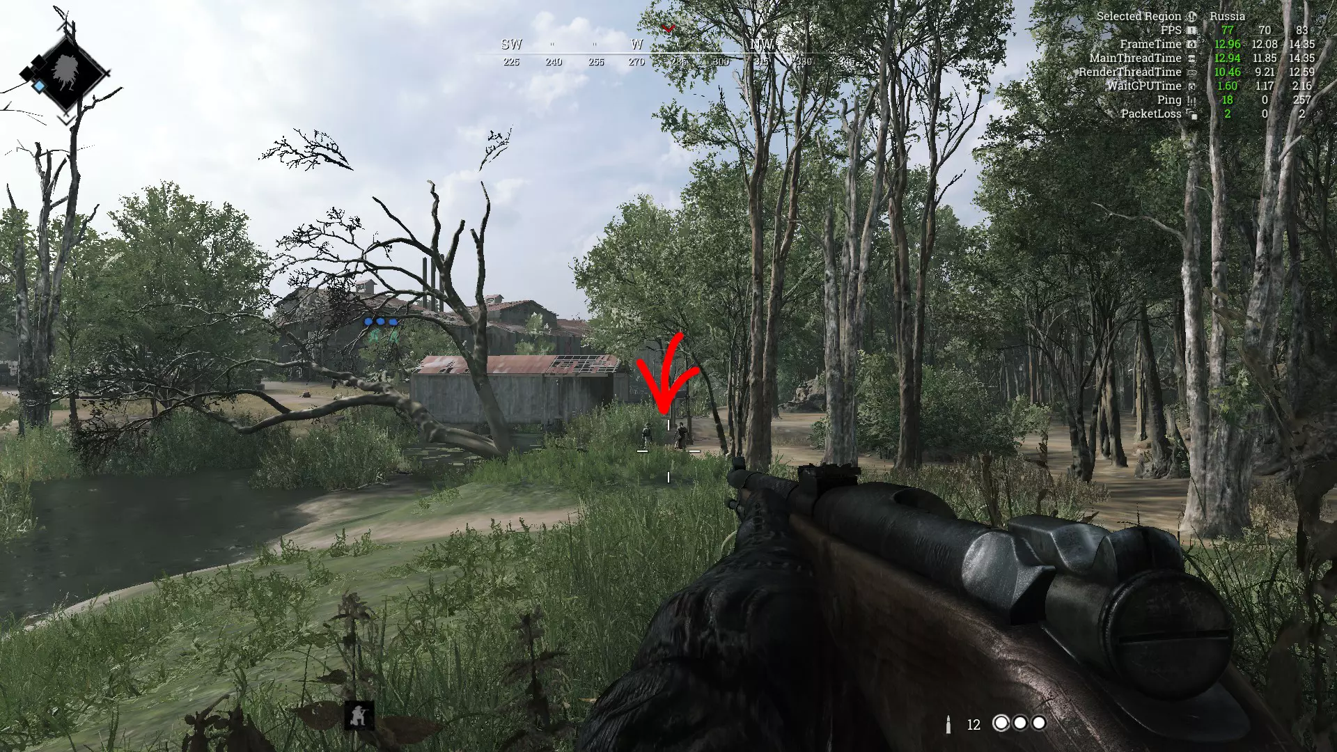 如何应对害怕发出声音的玩家 前言 猎人们,大家好。也许你和我一样喜欢快节奏的游戏玩法,已经对那些躲在灌木丛里长达30分钟、害怕发出任何声音的玩家(如果还能这么称呼他们的话)感到有些厌烦了,所以你点进了这份指南,想了解该如何尝试与这类人对抗。是的,现在可能会有很多这样的玩家涌入,说着我已经听过几十遍的话,比如“给自己买个皮肤然后用它玩”“没人禁止你也这么做”之类的。当然,没人禁止你以这种方式玩游戏,但你的击杀将毫无价值,而且我个人并不尊重这种玩法。就像在军事行动中,步兵会鄙视狙击手,因为敌人的狙击手的目标根本看不见。在开始指南前,我先说明一下,最好将物体质量至少设为中等,这个设置会影响渲染效果。 现在,我们直接进入指南正题。 生成的僵尸 生成后立即环顾四周,查看是否有僵尸。这一点相当重要,因为它在很多情况下都能提供帮助。这里的关键是要通过观察来判断距离,避免每次都犹豫不决,也不用去纠结这些敌人是因你还是因其他玩家而生成。我个人发现,这个距离大约在80米左右。需要补充的是,要做到这一点,你最好使用中程或远程瞄准镜的武器,或者终于可以派上用场的望远镜。这些僵尸是因你而生成的。