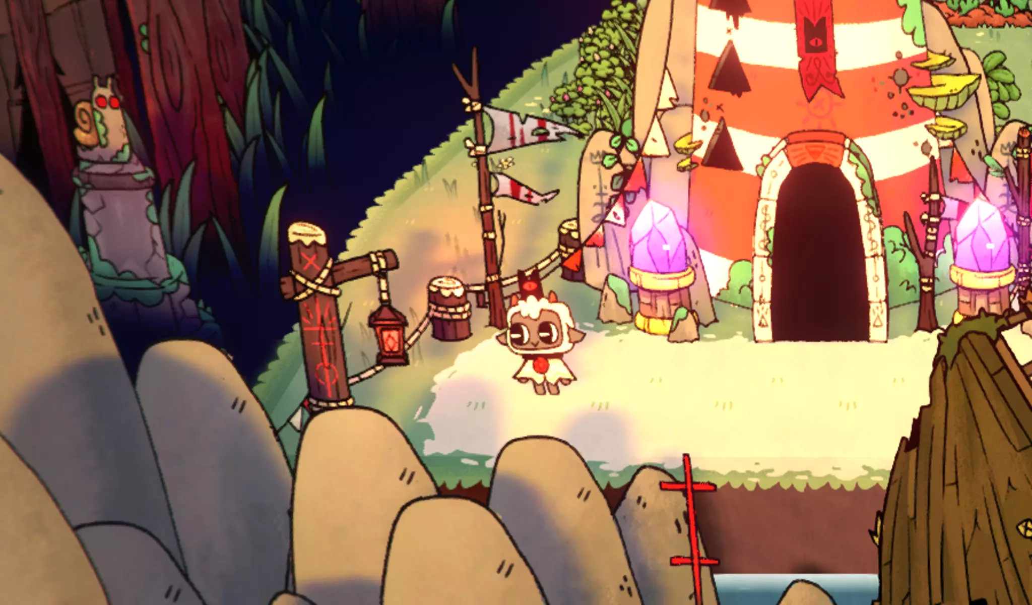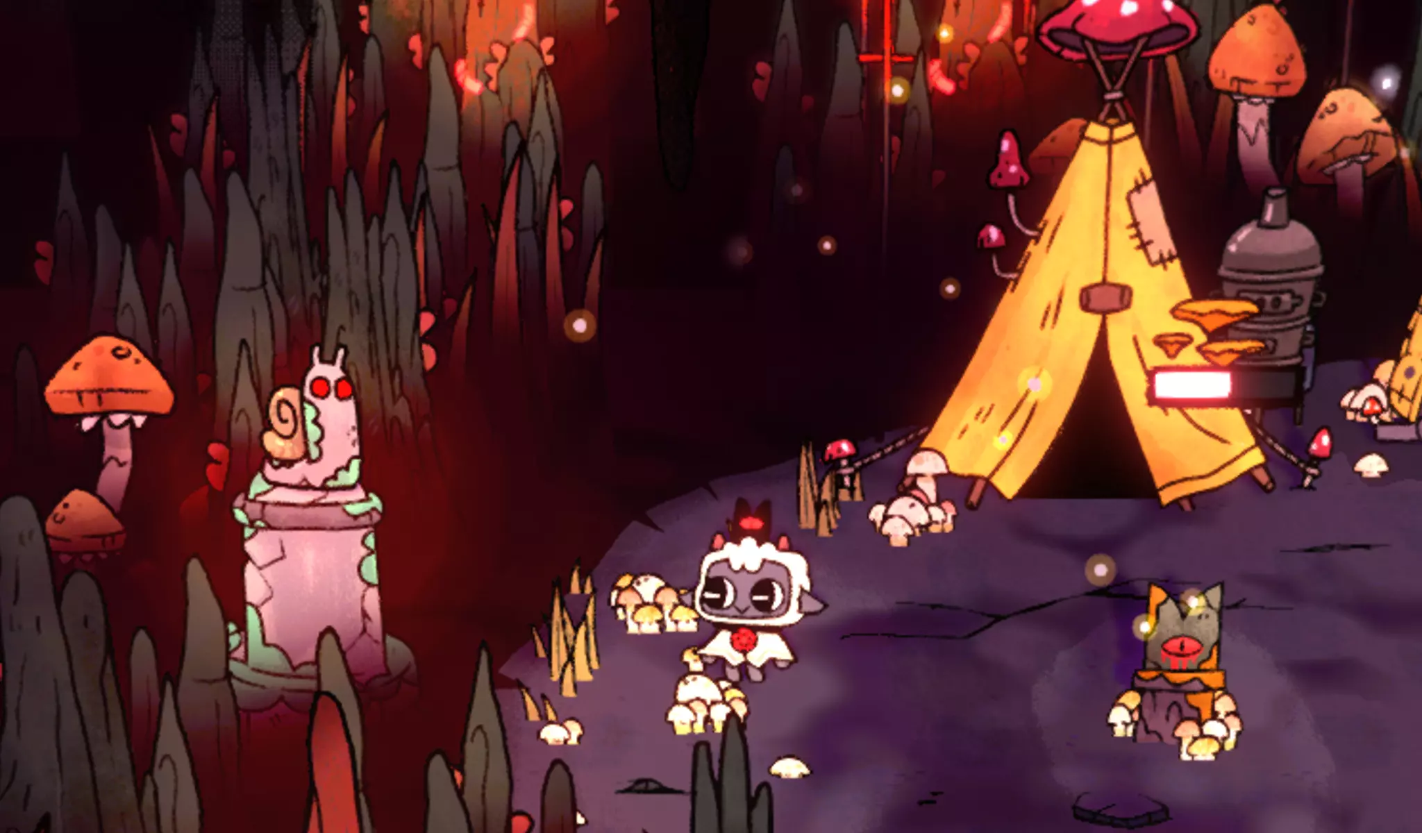 完整的羊群 解锁所有追随者外观。 解锁所有追随者外观(不包括DLC和活动外观)。大多数外观可通过击败小Boss或在地下城招募追随者获得。此外,你可以在地图上对应区域的自动售货机中购买缺少的外观,这些售货机是你在相应地下城解锁的(第一个地下城->朝圣通道等)。 不过也有例外情况: 蝾螈追随者 在朝圣通道的灯塔处,完成【光明使者】成就后,可花费25颗水晶兑换该外观。 鱼追随者 可通过钓鱼获得。 螃蟹追随者 在走私者巢穴中,捕捉那个走过小桥的螃蟹。怪物挂件 要解锁这个挂件皮肤,你得真正成为一个怪物。首先,进入任意地牢,在那里你会在虾的厨房里遇到它(标记为房屋图标下方的蔬菜图标)。虾的身后有一只巨大的蜗牛。你需要多次攻击它,直到虾夫人发怒并与你战斗。击败她后,你会获得一个装饰,你必须建造它,然后在晚上进行祈祷。之后你就能得到这个挂件皮肤……但这值得吗?:( 便便挂件 让你的挂件吃几次便便餐。 老鼠挂件 你可以在孤零零的小屋左侧、房子旁边找到它。蜗牛吊坠 要解锁这个吊坠,首先需要在第二个地牢中找到五个蜗牛壳(只需攻击那里的蜗牛即可)。然后必须将它们带到以下地点并放入蜗牛雕像中。 孤独小屋: