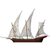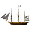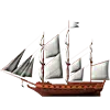 货物容量:100吨 生命值:150 最大速度:14节 最大火炮数:12门 月维护费用:450美元 索具类型:纵帆 双桅横帆船
