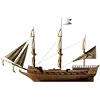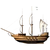 货物容量:150吨 生命值:600 最大速度:12节 最大火炮数量:40门 月维护费用:未知 索具类型:横帆 始终已安装【青铜火炮】升级。玩家无法购买。 三桅小帆船