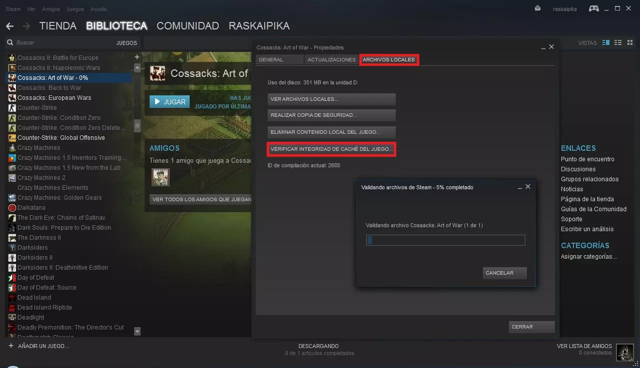 欢迎来到《哥萨克:战争艺术》西班牙卡斯蒂利亚语翻译指南。 我与Steam社区分享此翻译,以便其他西班牙用户能够使用我们的母语进行游戏。应用翻译的过程相当简单,我已尽可能清晰地进行了说明,以避免在过程中出现任何问题,请仔细阅读指南的每个部分。 重要提示:您可以随时将鼠标光标放在指南图片上并点击左键来放大图片。 安装游戏/验证游戏缓存/进行备份
