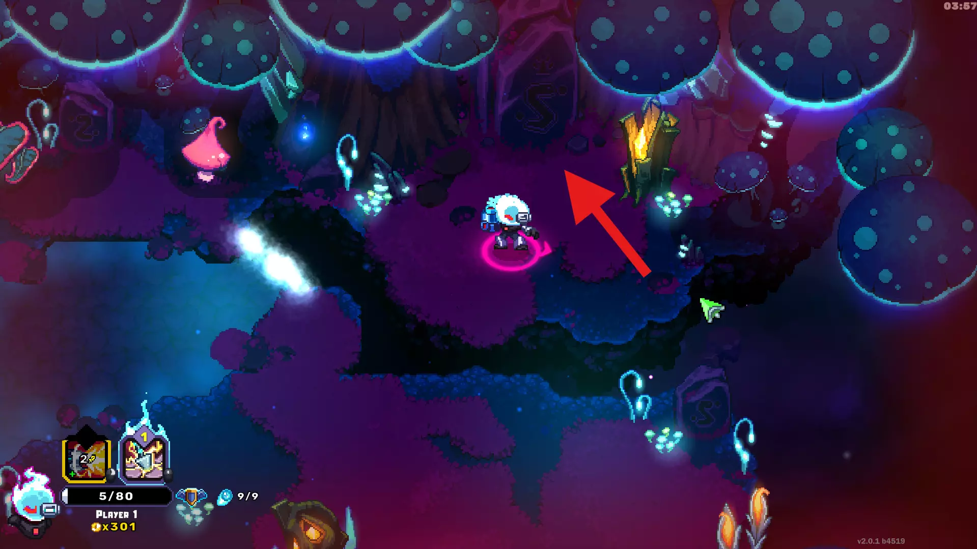 世界3:如果你找到这个房间,使用召唤大地技能。他会挖向周围有蓝色水晶的黑色岩石地面。如果他已经处于激活状态,当该区域没有敌人时,他会直接走向那里。
