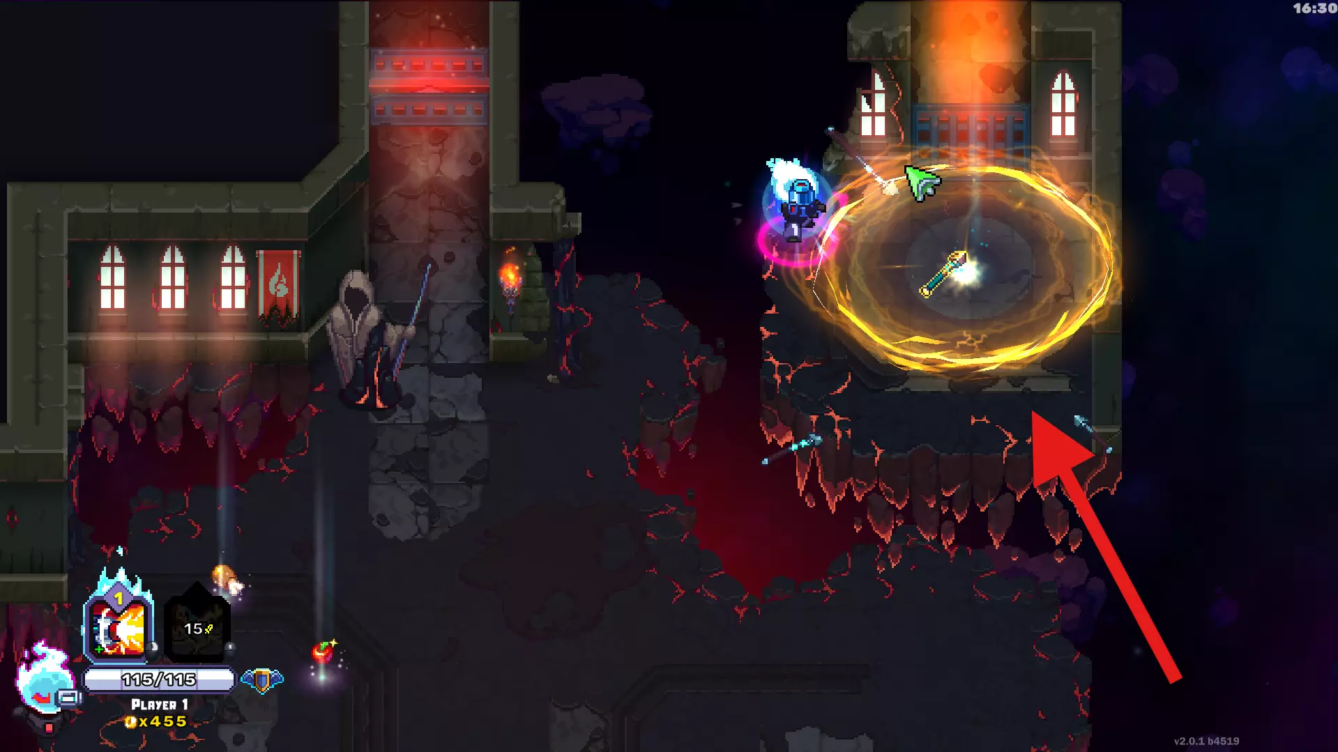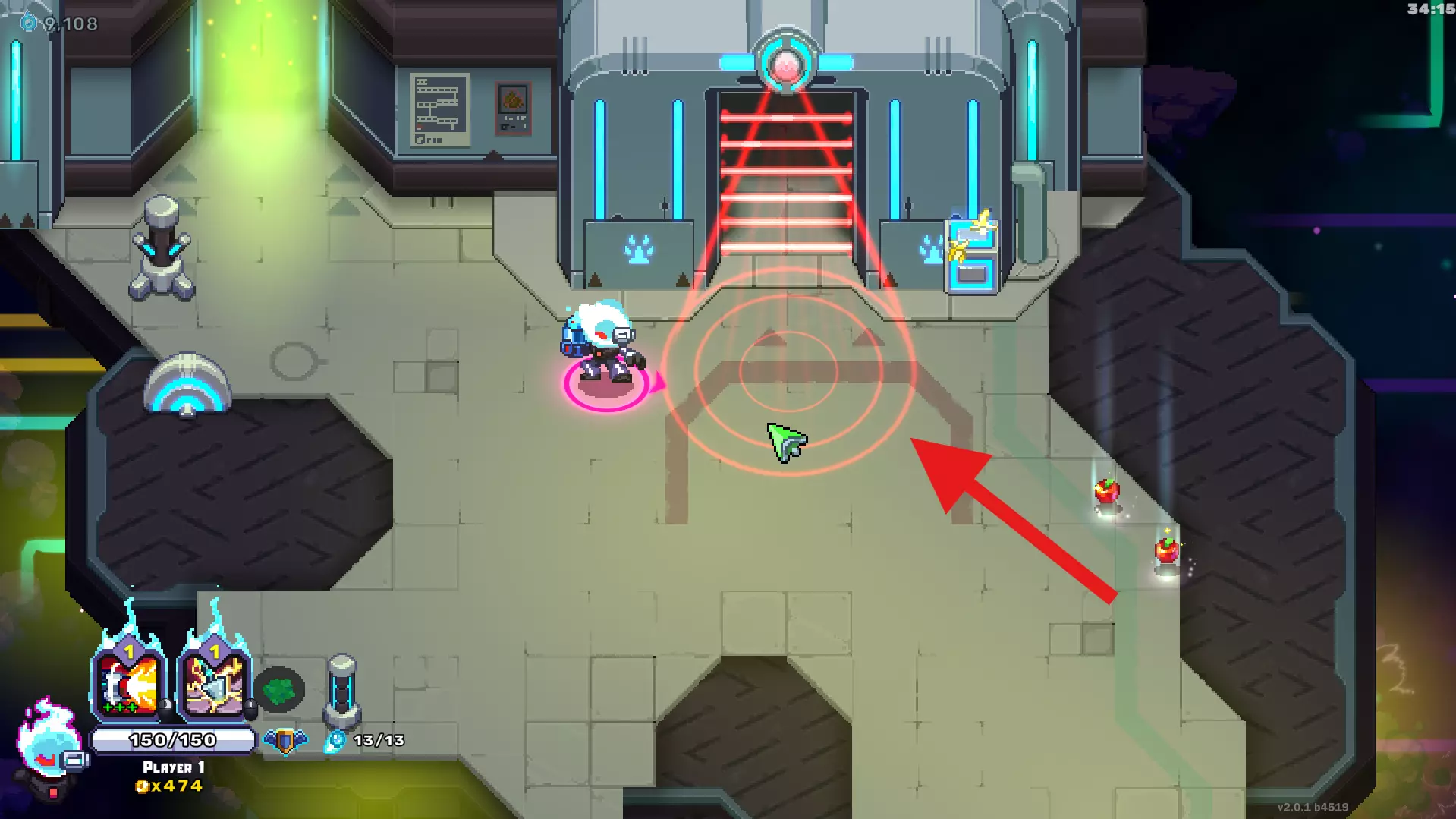 世界4:如果你找到这个房间,站到扫描仪中间后,门会发射紫色投射物,此时使用【浪人反射】技能。根据你的build不同,你可能只有一次尝试机会,所以要小心。慢慢来——这个球不会伤害你,只会把你推开一点,所以先掌握好时机。