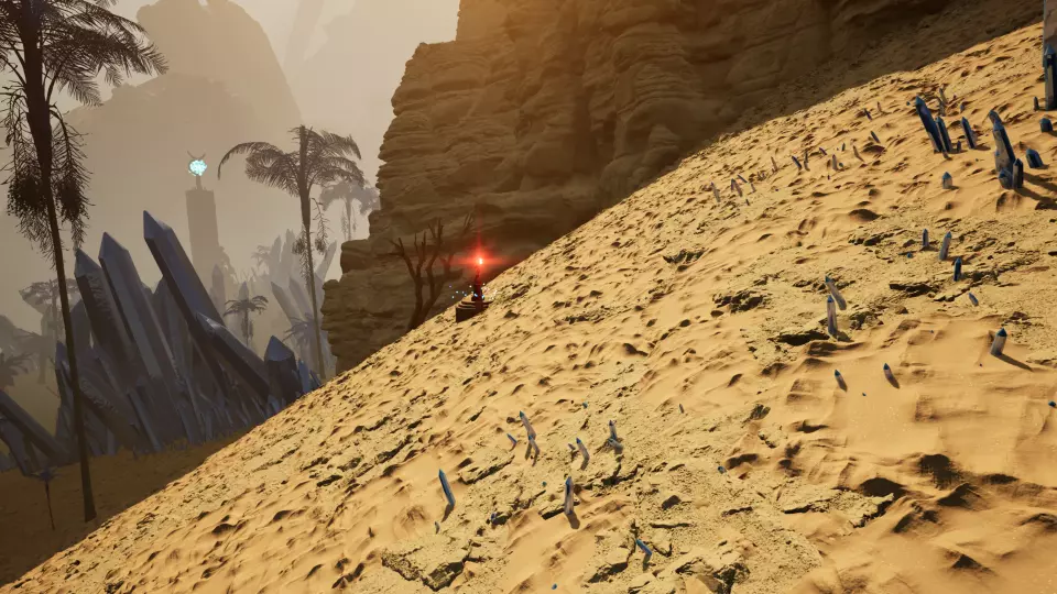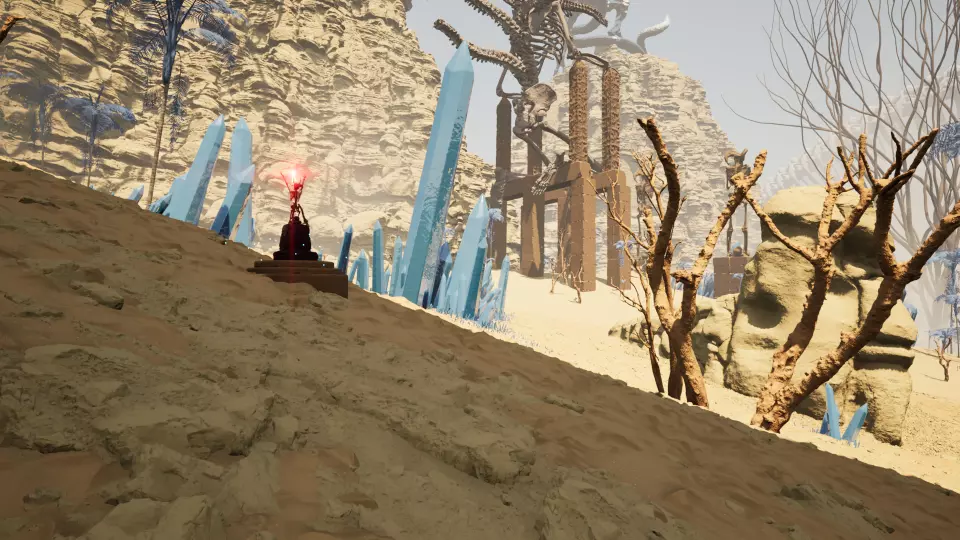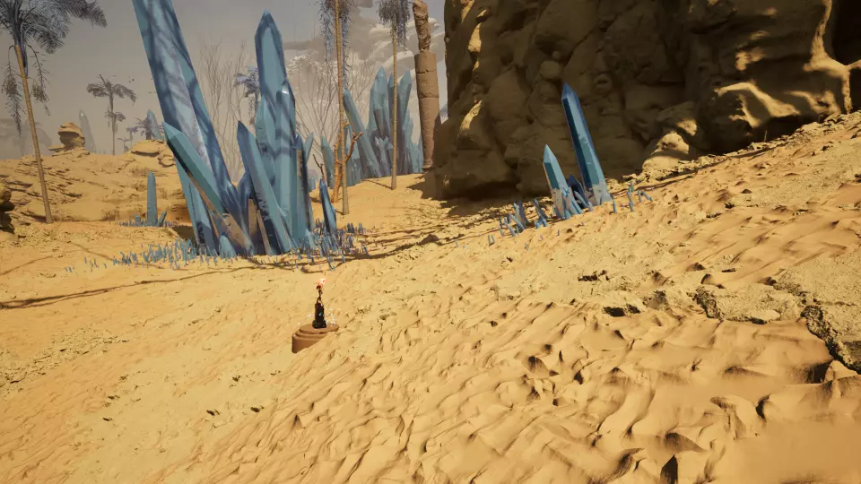 挖掘点3 从传送门2出发,望向西南方向的大型水晶簇。绕到水晶簇后方即可找到挖掘点。