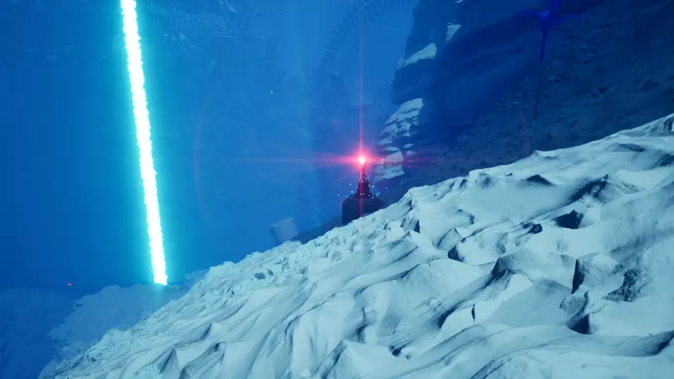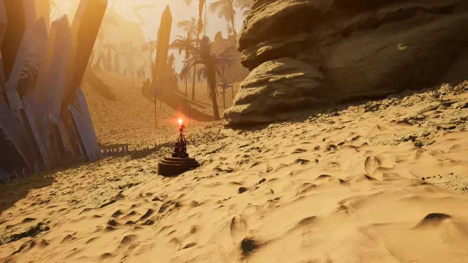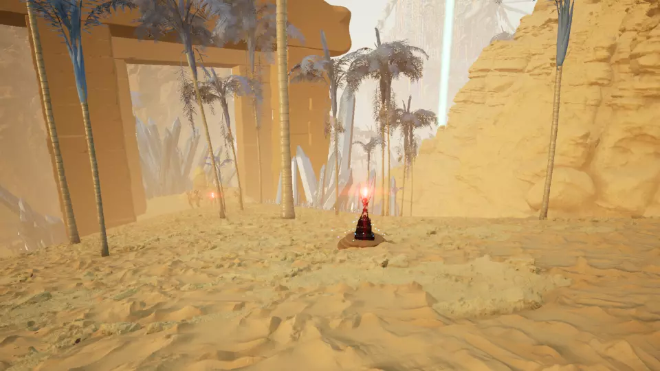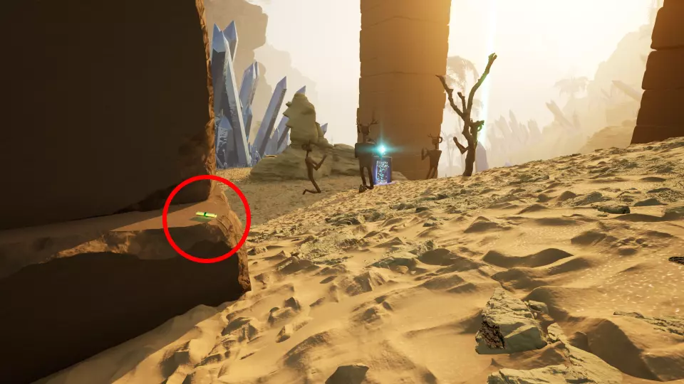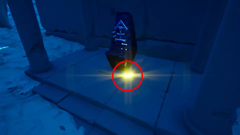 传送门5 从传送门4出发,朝东望向巨大的岩壁。绕着这块岩石逆时针走,继续上山,就能在一根大柱子底部找到传送门。
