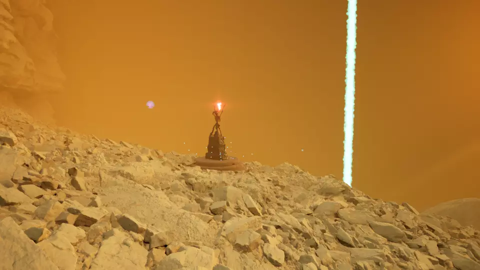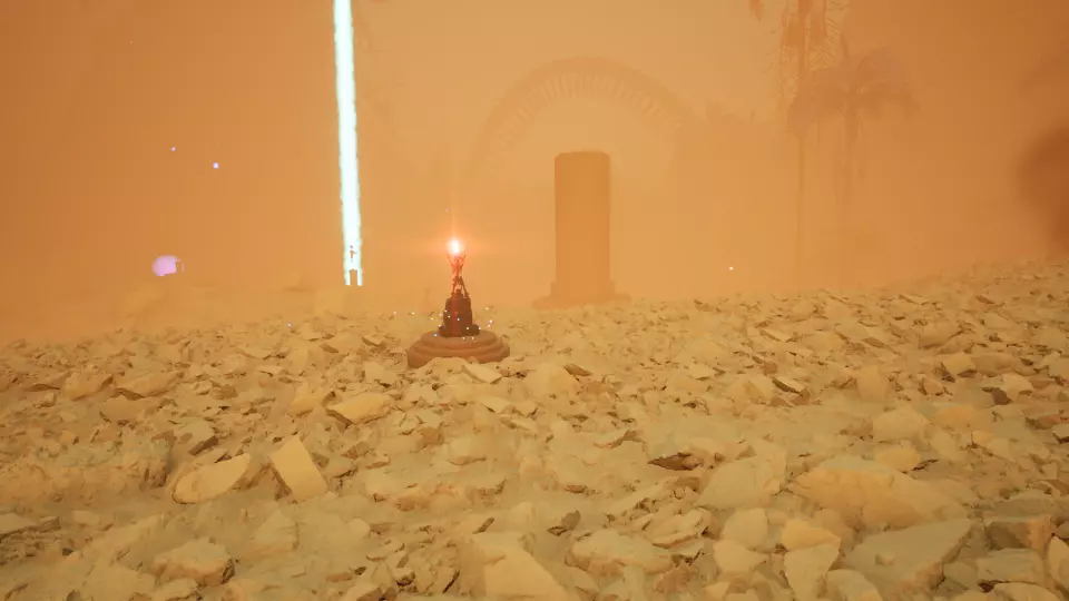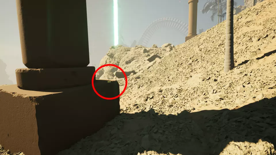 卷轴5 - 制图师:第5条记录 从5号传送门向东望向大石柱。卷轴位于能量柱底部,就在这根大石柱的基座处。