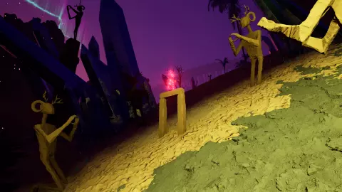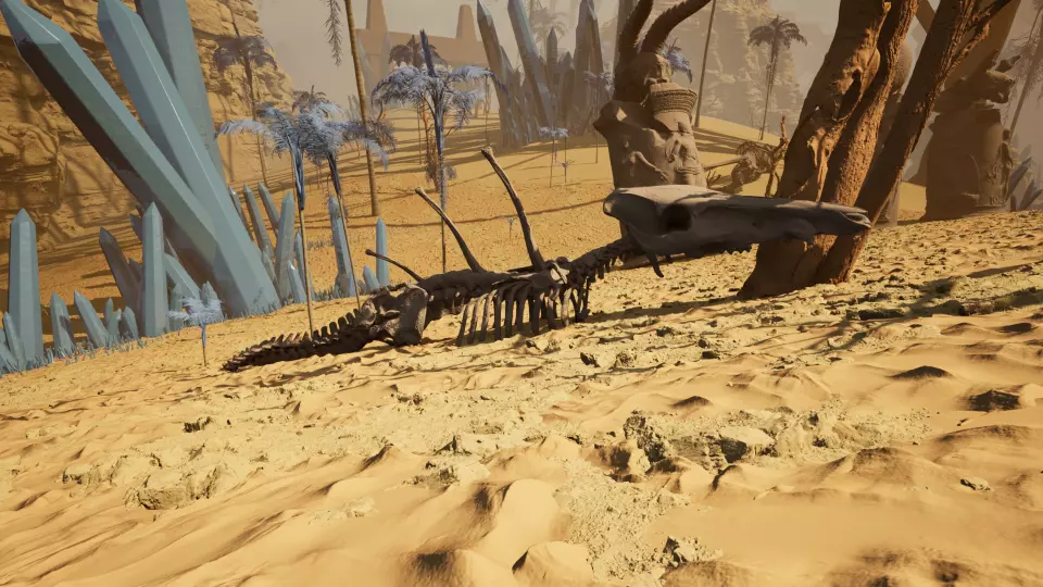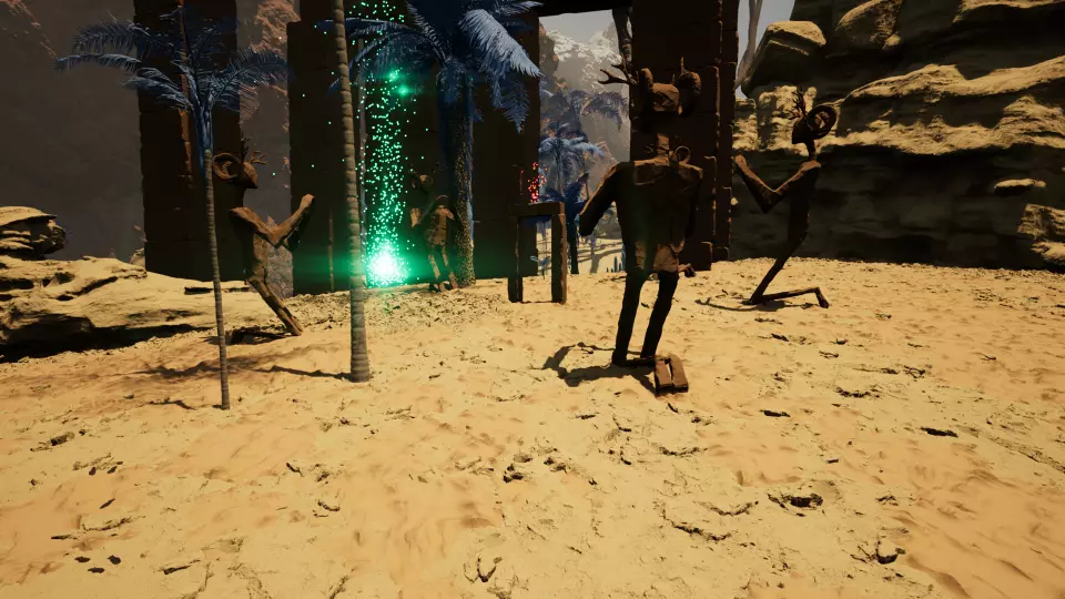 传送门4 从传送门2出发,向北前往两块巨石之间的大型拱门。穿过拱门后,继续向北经过一棵大树,朝着位于第二棵大树前的拱门和骨骼雕塑前进。传送门就在这个拱门处。