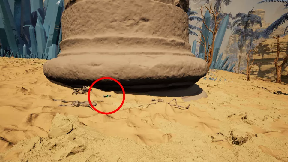 卷轴 卷轴1 - 制图师:记录1 从传送门1出发,向西南方向前往三根高大的柱子处。卷轴位于中间那根柱子的底部。