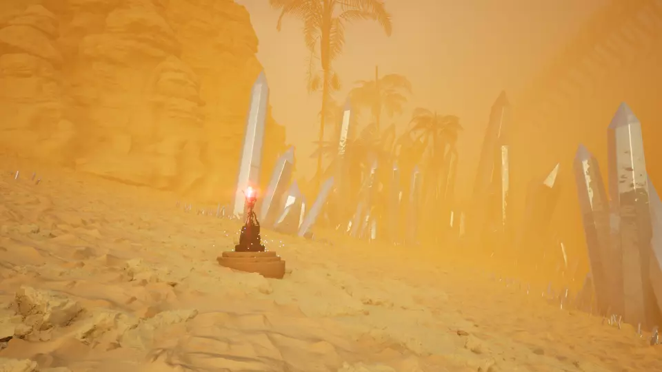 传送门3 从传送门2开始,向西看向左侧大拱门和右侧大岩石之间的位置。向前走,穿过岩石和悬崖边缘之间的通道。沿着左侧悬崖边缘绕行,直到在一簇水晶后面找到下一个传送门。