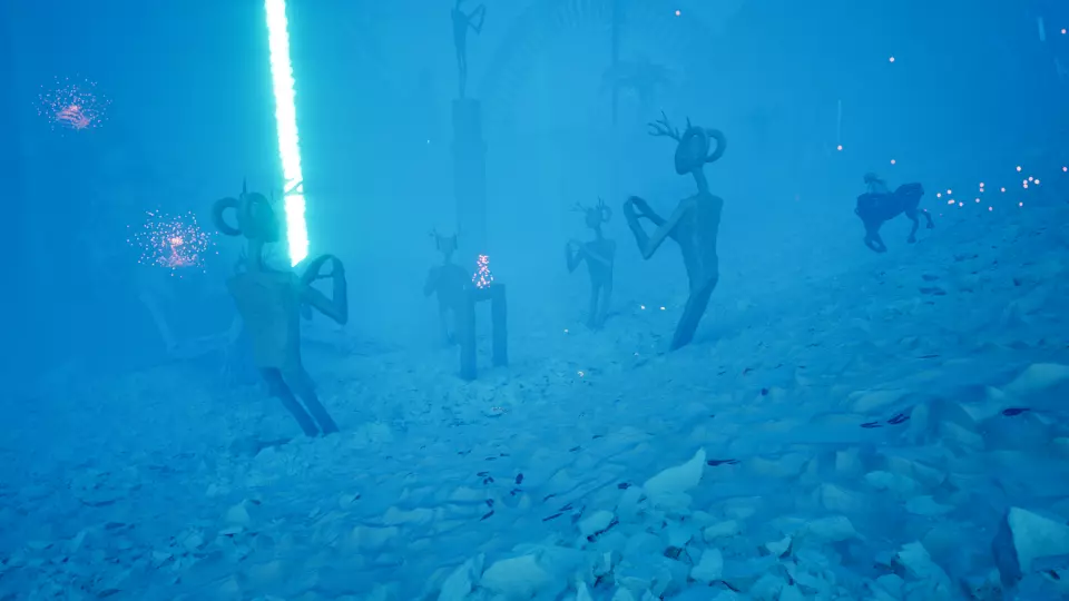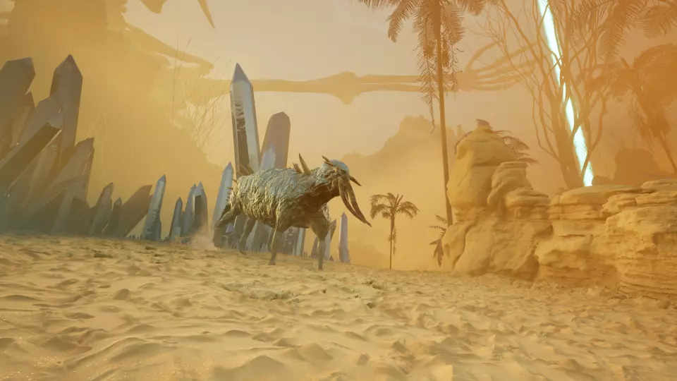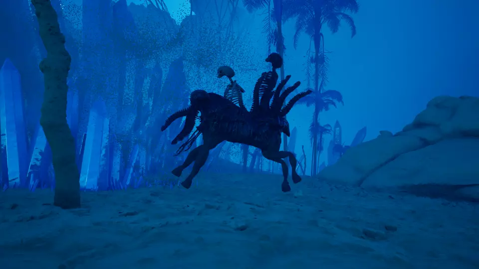 传说生物 传说级 - 碧蓝澳洲水兽 从2号传送门出发,向南前往大岩石旁的大树。绕到岩石另一侧,即可发现这只在岩石与大石柱之间游荡的传说生物。