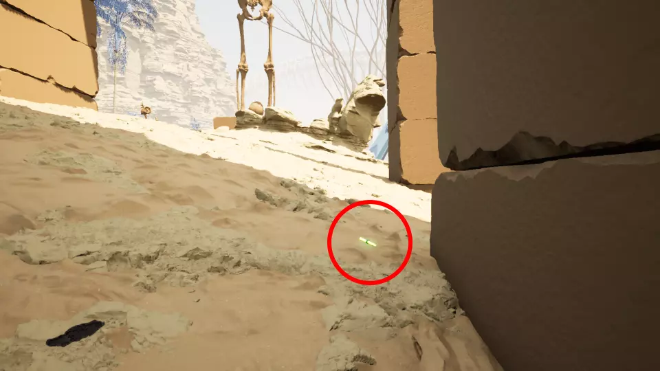 挖掘点6 从传送门2出发,向西看向左侧大拱门和右侧大岩石之间的位置。向前走,穿过岩石与悬崖边缘之间的通道。经过岩石后,向北走,在一片开阔地带即可找到挖掘点。