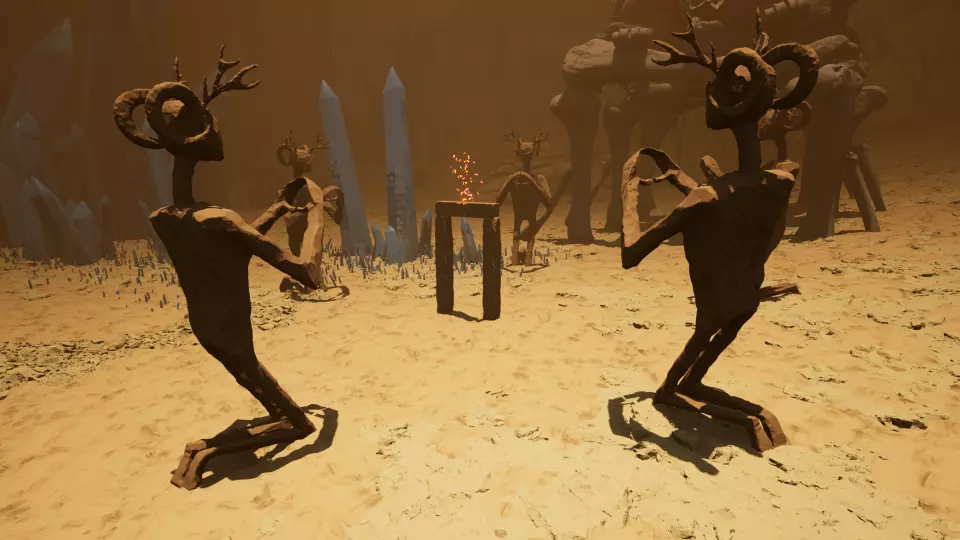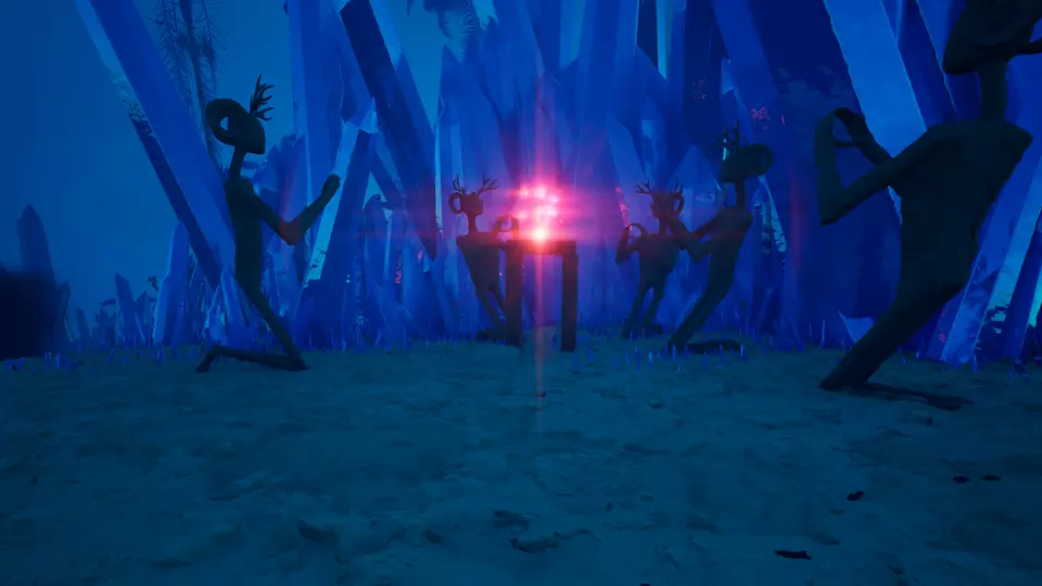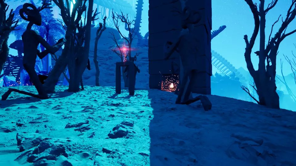 传送门2 从传送门1出发,向西南方向前往三根高大的柱子。到达柱子处后,向西朝着一个大型动物头骨雕塑前进,即可找到传送门。
